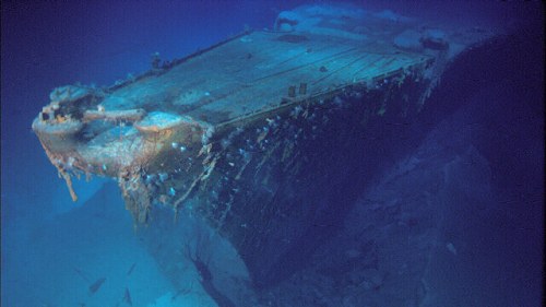 ah, la Bismarck, uno dei capitoli più eroici della Kriegsmarine, dichiarata cimitero militare nel dopoguerra e ancora oggi considerata tale, qualunque oggetto presente al suo interno e al suo esterno non può essere ne toccato ne asportato perciò è ancora tutto integro al suo interno, (a differenza di altri relitti come il Titanic [nero]), il legno Tek è il non plus ultra per i ponti delle navi perciò e più che comprensibile che abbia resistito, anche se un simile stato di conservazione è stupefacente, poi la grande Hakenkreuz prodiera per il riconoscimento aereo non mi sarei proprio aspettato che si conservasse.
