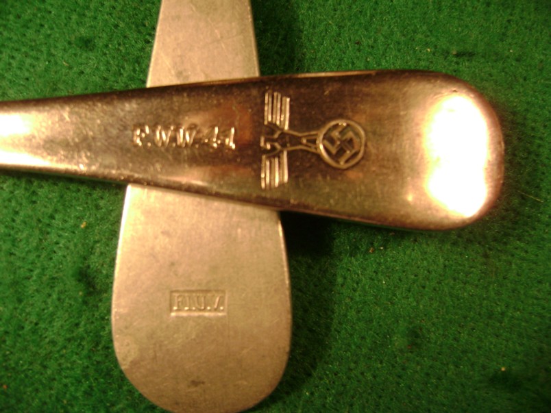 Per quanto concerne queste posate, nello specifico premetto che mi sono limitato a consultare un libro ed un catalogo di "falsi" acquistabili on-line e le mie che ho trovato "con le mie manine sante" quando ancora mi divertivo a girare per fare "buchi": la prima dovrebbe essere falsa, il marchio così l'unico posto dove l'ho mai trovato è tra i falsi. La seconda è quella che mi da più che concrete speranze di essere originale, tra l'altro è molto bella con il marchio ben evidente e poco consumato. La terza, quella che immagino il sig. Cipolletti reputi essere una "WL girata a sinistra", ha il marchio "WL" ma l'aquila è Kriegsmarine: temo anche quella sia falsa.