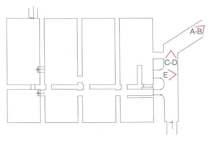 Le prime sono disegni del suo sviluppo, l'ultima cartina vi è indicata quale era la sua posizione all'interno di altri fabbricati civili.