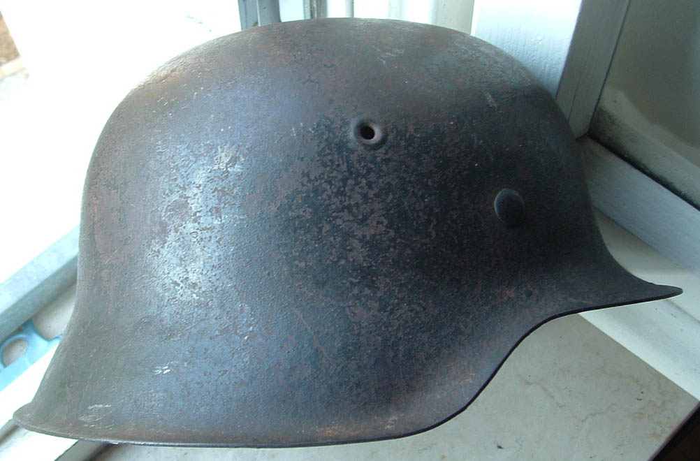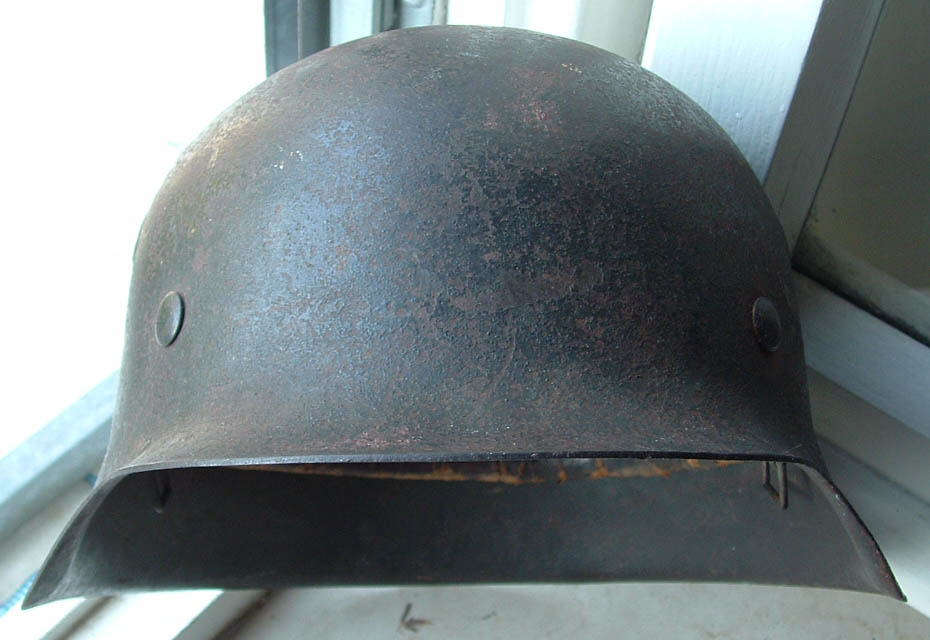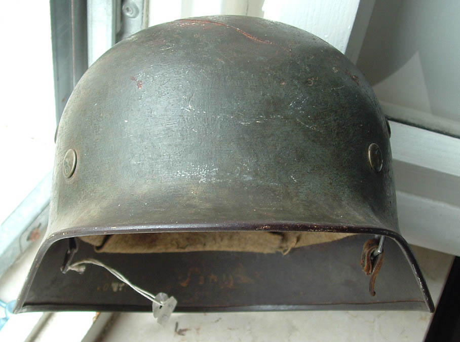 Posto ora un altro M35 di scavo rinvenuto sempre in Normandia.Anche su questo esemplare ci sono ancora evidenti tracce di mimetismo,anche se dalla foto dubito si vedano.