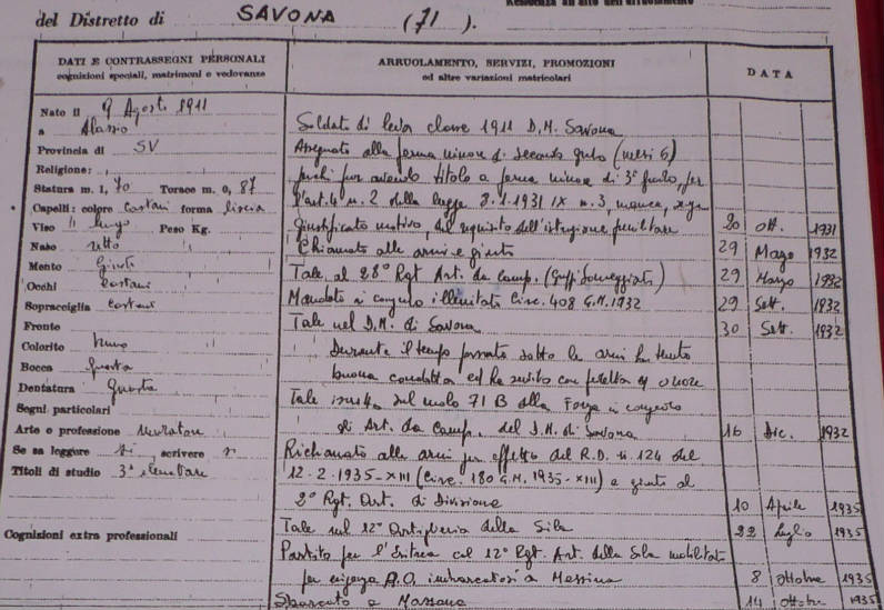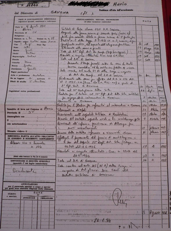 Posto il foglio matricolare di mio padre che sono riuscito ad avere grazie alle dritte di FM.