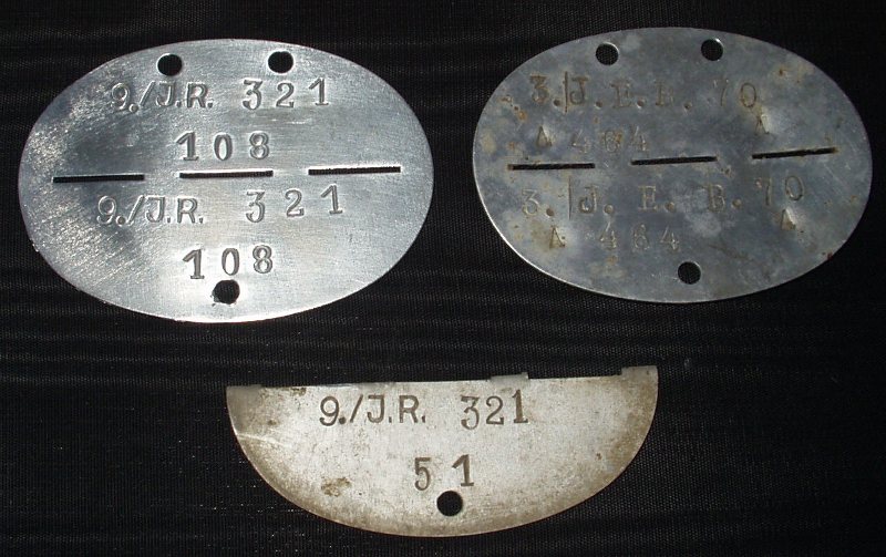 Una cosa salta subito all'occhio.Sicuramente non sono mai state portate al collo,visto che non vi è traccia della classica forma ovale che prendevano i fori a causa dello sfregamento continuo del cordino.Non è però indicativo,in quanto molti portavano la piastrina in una specie di portamonete apposito.Una cosa che però salta all'occhio è la differenza dei caratteri nella piastrina e nella mezza piastrina dello stesso reggimento.Aggiungo che nella piastrina completa e quasi mint il numero 321 è differente nella metà* superiore rispetto alla metà* inferiore,proprio a livello di carattere.Non tanto sul 3,ma sul 2 e sull'1 risulta parecchio evidente.Poi sicuramente mi sbaglio.