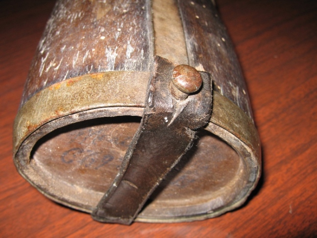 ... si tratta della borraccia italiana adottata come modello 1907 per le Armi a piedi. Quella per le Armi a cavallo aveva la cinghia per portarla a tracolla. Era costruita in legno di pioppo in tre pezzi.