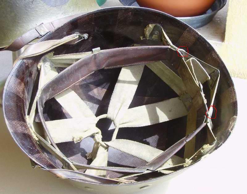 Ciao Casottigotica! No, il primo liner č della seconda guerra mondiale, solo che mancando il regginuca , perchč rotto, perso o chissą* cos'altro, č stata spostata la head-band (forse per iniziativa personale del soldato) sul supporto del primo mancante. Infatti se fai caso si vedono i bottoni automatici per il fissaggio del regginuca che ho evidenziato in rosso