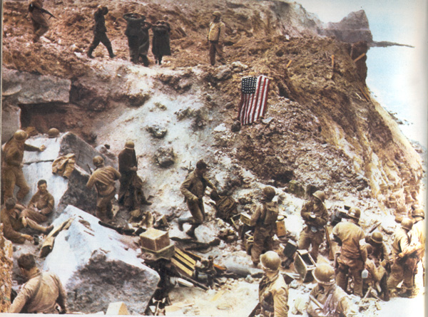 Mi permetto di inserire le patch divisionali della 4th Inf.Div. "Ivy" e della 90th Inf.Div. "Though Ombres" ed inoltre un'immagine dei soldati che,appena predisposti su di LCVP(Landing Craft Vehicles Personel)partono alla volta di Utah e quindi soldati attestati sulla spiaggia stessa(notare le buche che hanno scavato).