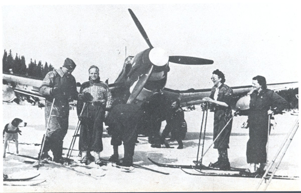 Piloti deteschi di Stuka fotografati con alcuni norvegesi giunti in sci all'aereoporto base degli aerei degli occupanti