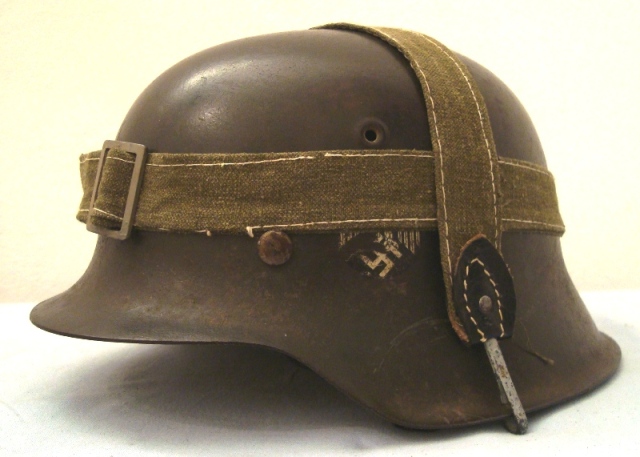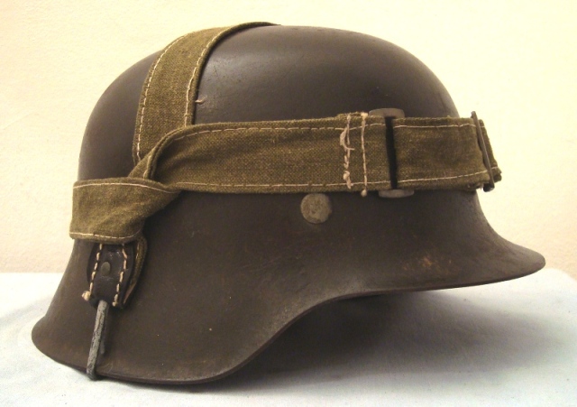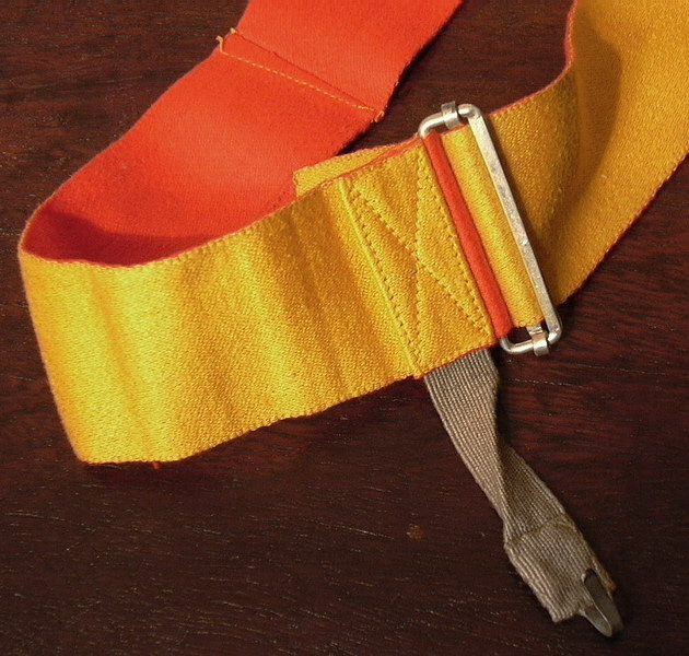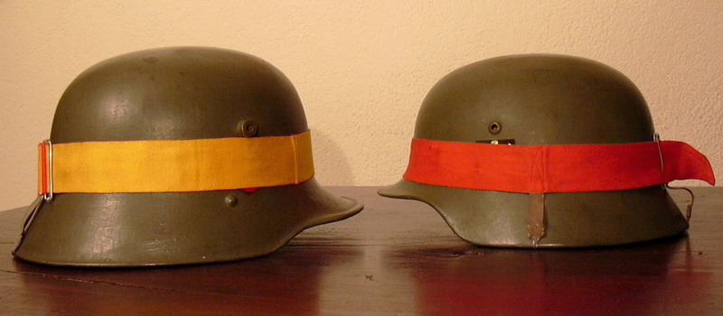 Un altro recupero recente con la collaborazione del mio fido "assistente" Mulon. [:D] Si tratta della prima versione ufficiale di helmband testata durante le manovre effetuate dal 22 agosto al 2 settembre 1932. Denominata "Helmband 32" presentava tre pezzi bicolori (giallo-rosso) cuciti assieme e regolati con la solita fibbia di alluminio, mentre era agganciata con un unico gancio di metallo cucito sulla parte posteriore per mezzo di un nastrino di colore feldgrau. Misurava 75 cm di lunghezza per 4 cm di larghezza. Di questa fascia ne fu prodotto anche un prototipo sperimentale di colore blu scuro, antecedente al 1932..
