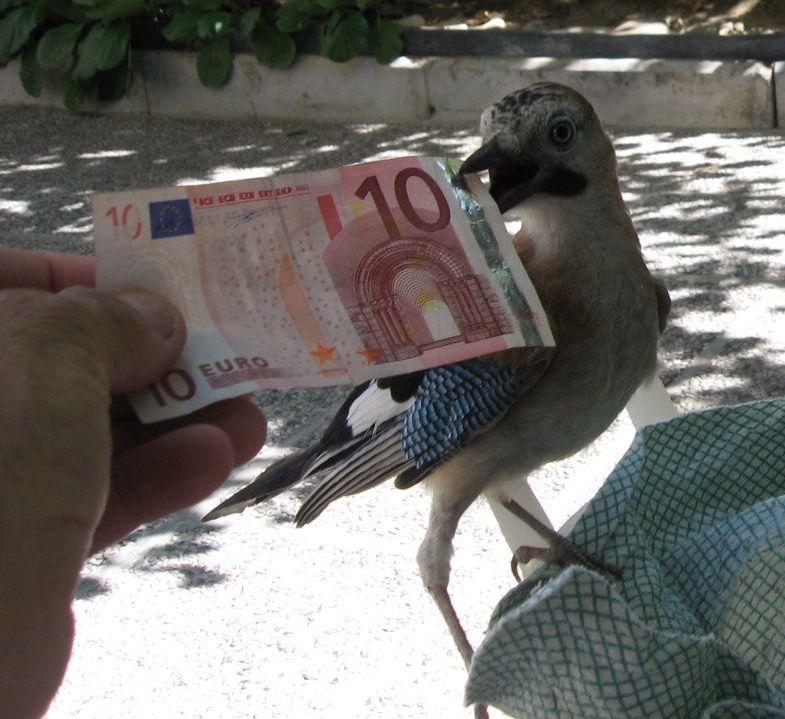questa è una ghiandaia che questa estate è stata "adottata" o quasi da tutto il quartiere, qui fotografata durante una delle sue frequenti visite "pausa pranzo" e di gioco a casa nostra...