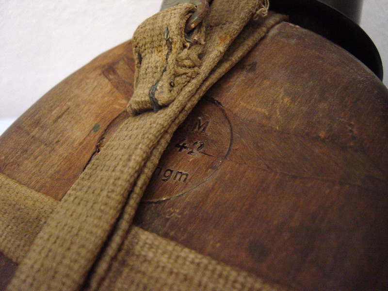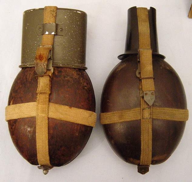 La borraccia tropicale nelle sue varianti, molto belle e coerenti nell'usura. Quella con il gavettino in bachelite reca la data 1943 sulla cinghia, un particolare che noto per la prima volta. [;)]