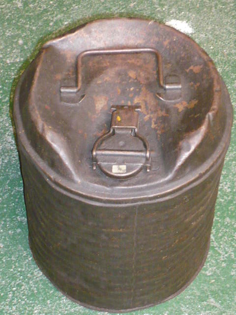 Questa tonda è molto pesante, adatta appunto agli urti che doveva subire durante i lanci, inoltre lo studio di questa iniziò molto avanti nel tempo, quando ormai le tanichette leggere erano più che superate, anche se ne ho prodotte ancora nel 1944 quando ormai erano già* in uso anche le copie del jerrycan.