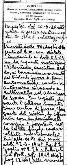 Detto questo, la motivazione è riportata oltre che sul Bollettino Ufficiale, dispensa 7, pag. 1246 del 1949, anche su un registro vistato dalla Corte dei Conti che ne certifica e autorizza la liquidazione dell`assegno annesso alla decorazione...
