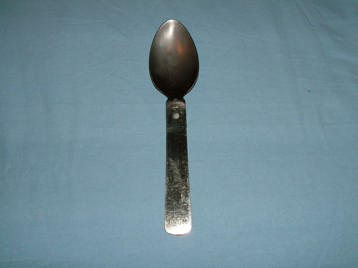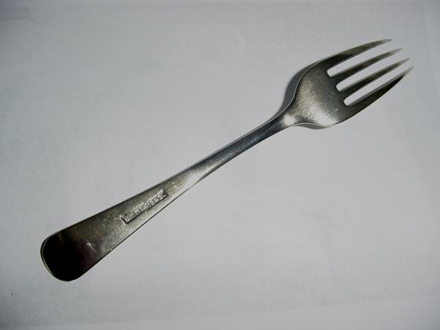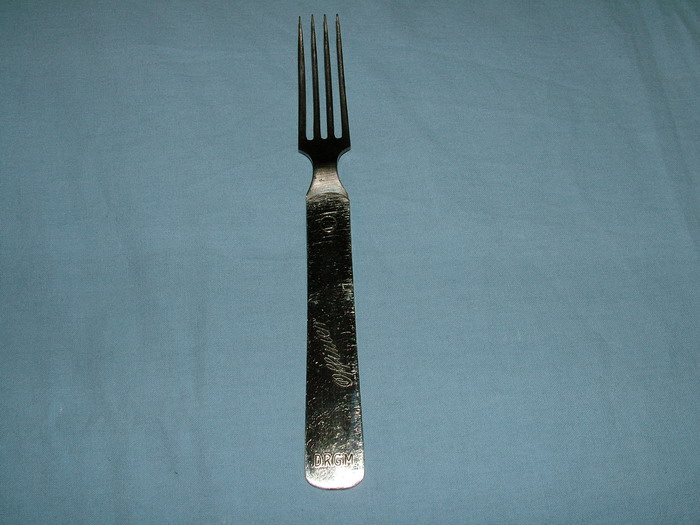 Ciao,la forchetta è di una qualche organizzazzione o gruppo militare,o qcs di simile,dato che tutti in Germania marcavano tutto ove possibile.Solo che non so a cosa rimandi quella sigla.