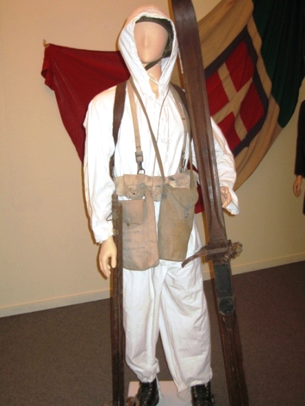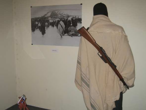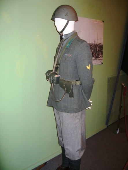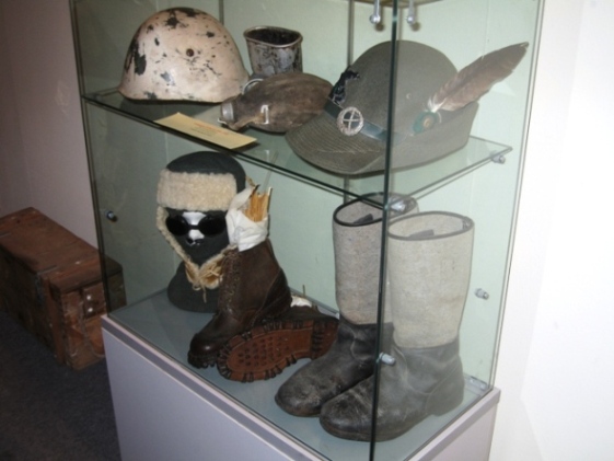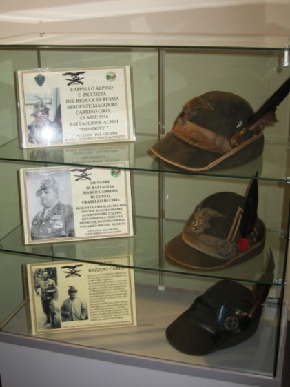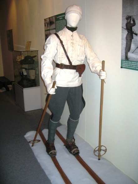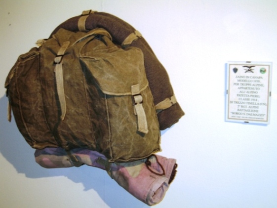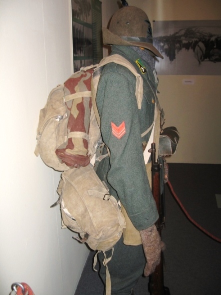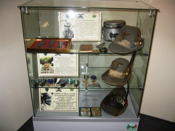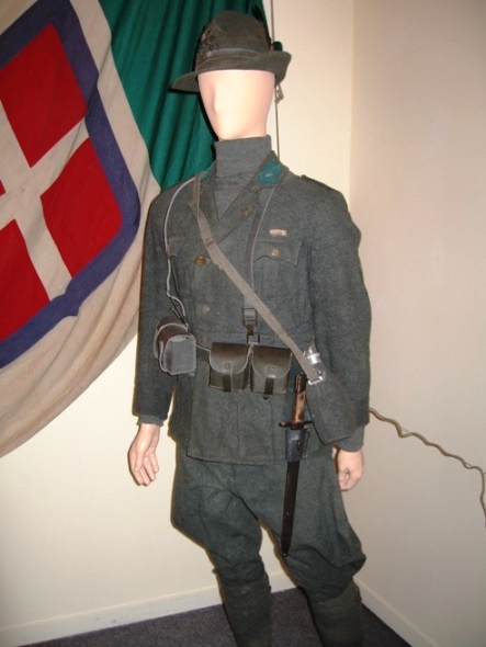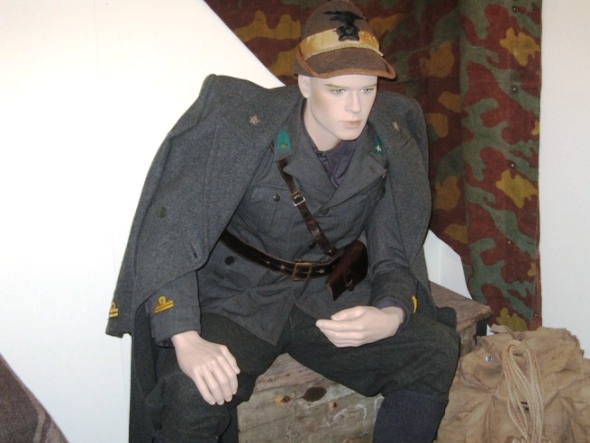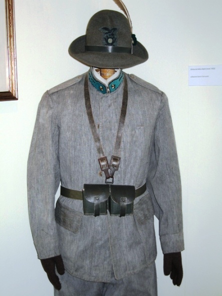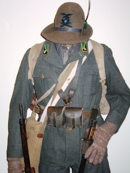 Il manichino con tuta mimetica elmo con penna dovrebbe essere del Monte Cervino.