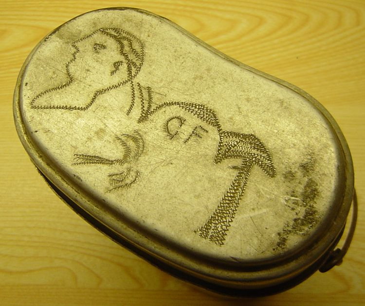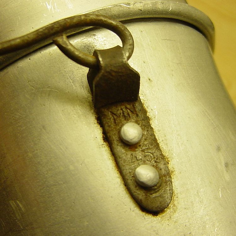 Allora,il tipo da cui prendo la roba ultimamente,ha dei pezzi pazzeschi,con dei prezzi pazzeschi......a certi oggetti allega anche la storia,credibile o meno che sia....bene,la storia della gavetta è che proviene da un reduce d'Africa,catturato in Europa,che ha ben pensato di personalizzare la gavetta: