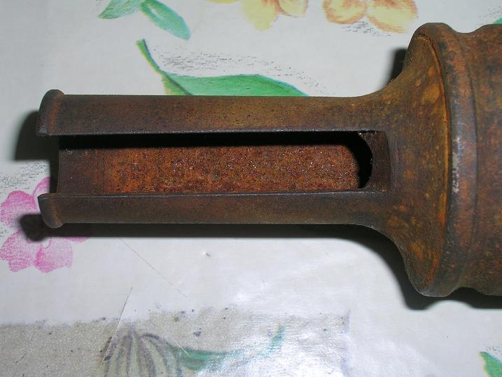 da scavo direi di no, o comunque non da terra! la ruggine è uniforme , per fuori è stato pulito in maniera sommaria, fino a lasciar vedere qualcosa che può sembrare una zincatura. all'interno è uniforme, leggermente granulosa.
