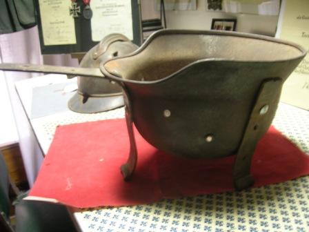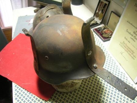 I rivetti sono stati rimontati e dalla posizione che hanno i fori non sono nemmeno sicuro che sia un elmetto tedesco.