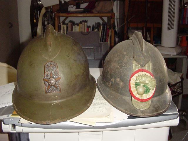 Mi perdoni, esimio Sal, ma l'elmetto con fregio Sanità* non è un elmetto italiano prima guerra mondiale, ma un Mod.26 francese, inconfondibile rispetto al Mod. 16 italiano, per via della coppia di rivetti frontali (e anche laterali e posteriori) del Mod. 26, assenti sul 16, e del crestino fissato nel francese coi rivetti, invece con due punti di saldatura, praticamente invisibili, sul Mod.16 nostrano.