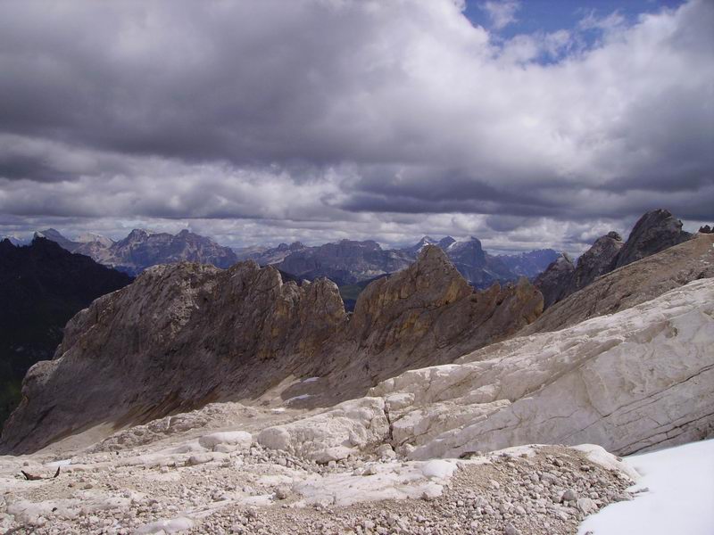 Il panorama innevato, mmm, mi metti in curiosità*, la terza foto mi farebbe pensare al Lagazuoi, versante scendendo verso il Col de Bois o il Rifugio Scotoni, però tutta quella neve di luglio, boh.....