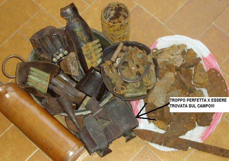Eh eh eh! Caro Nik ... tranquillo! [:72] Magari le giberne così belle si trovassero sotto terra, fosse così ci avrei messo le tende![:D] Ho detto che sono suovenir in cui siamo inciampati ma non ho detto nè come ne dove! Cmq la giberna ed il bottiglione in terracotta vengono da una cantina del posto peccato che non c'era altro, il proprietario aveva già* regalato tutto ai suoi precedenti inquilini [:(]. Peraltro al forte tre sassi per chi interessasse vendono alcuni souvenir d'epoca e non, tanto per dare l'idea per un lume fatto con bomba a mano sipe ed un rampone da ghiaccio avvitati assieme(lavoro fatto adesso ad imitazione di quelli costruiti in trincea) mi hanno chiesto 50 Euri! Per il resto per rispondere a Cavaliere Nero confermo che di ferraglia senza metal se ne trova poca, comunque se ne trova! Poi dipende anche se uno si accontenta e di che cosa! Ad esempio c'era molto filo spinato austriaco e dico la verità* se avessi potuto, maniaco come sono delle cose antiche, me lo sarei portato a casa tutto assieme alle lamiere varie sparse ovunque, ma per motivi logistici non ho potuto... aimè. [ciao2]