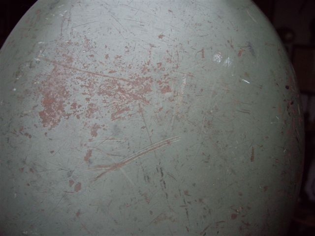 ecco dopo la pulizia,prima con acqua e sapone e poi con abbondante razione di diluente nitro..come si può notare non è cambiato nulla...il fatto che una famiglia con praticamente nessuna conoscienza di materiale bellico abbia ritoccato quest'elmo mi sembra strano,potrebbe anche essere direte voi,ma ho visto già* elmi riverniciati me ne accorgo osservandoli. poi passando uno straccio imbevuto di diluente,acetone,acqua ragia,(le ho provate tutte per smascherare eventuali magagne)non ho notato segni di cedimento della vernice. anche se non sono un gran fotografo...ora che ve ne pare?