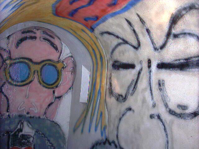 Cercando nel mio archivio foto non ho trovato scarabocchi significativi del famigerato Pao! Ero così arrabbiato che non ho fotografato tali scritte - ma lo farò appena possibile, tanto le ha fatte ovunque.