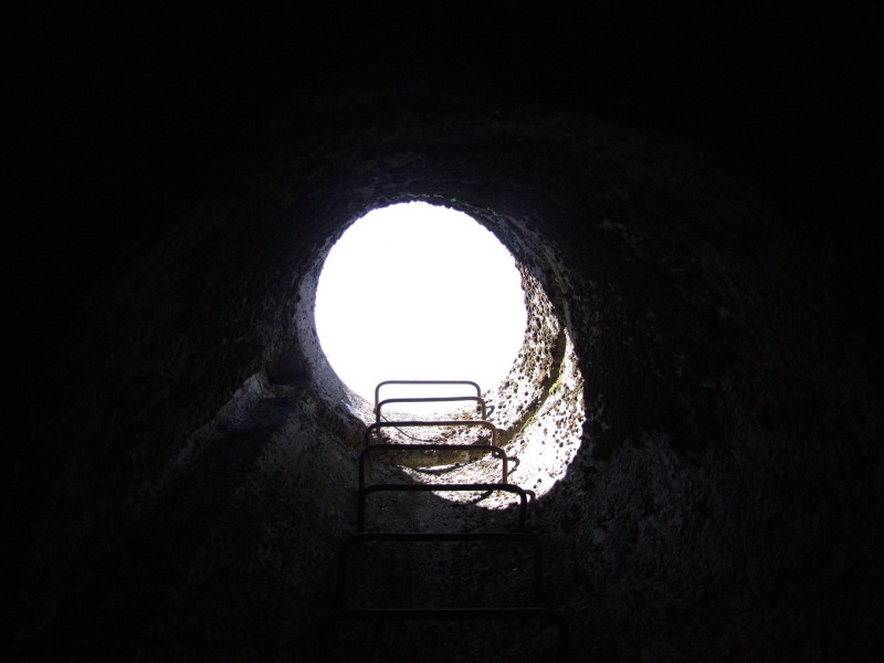 Da qui una scala alla marinara scende per diversi metri, porta ad una scala normale e poi ancora ad un reparto logistico di circa 16 m quadrati, per poi uscire nella boscaglia.