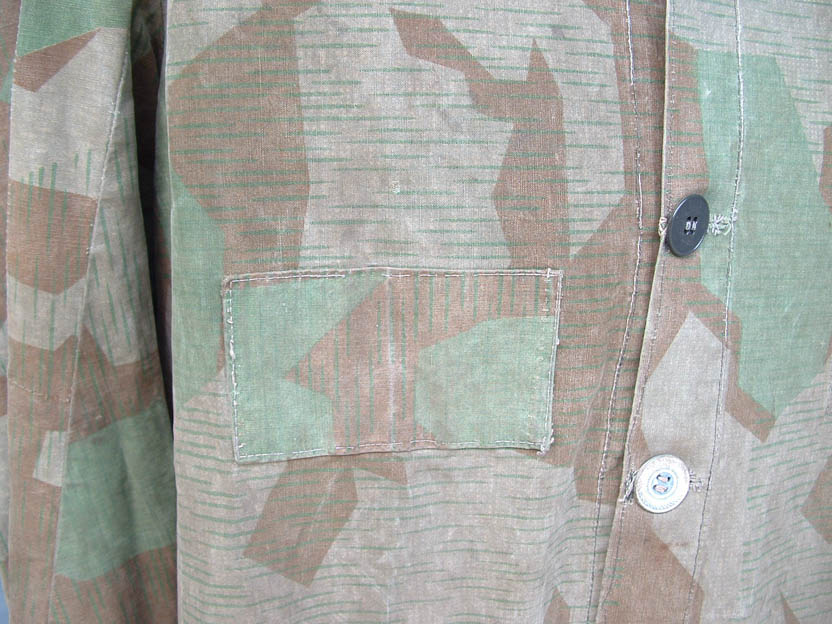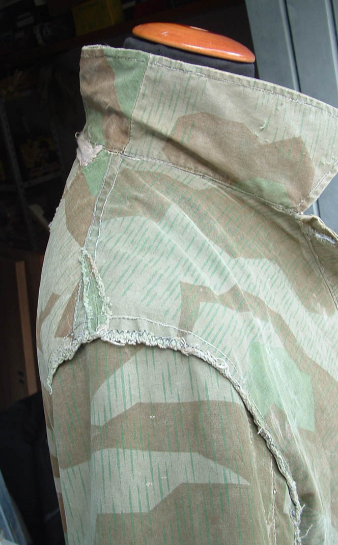 altra giacca realizzata sul campo con tessuto mimetico del telo tenda,è molto vissuta e riattoppata, si vedono i segni lasciati dalle cuciture di mostrine tolte mentre dei bottoni che mantava inizialmente ne sono rimasti solamente due, anche per questo indumento vale tutti i diacorsi fatti sull'altro giacchino, non lo so, magari molti di voi non la prenderebbero nemmeno in cosiderazione o non la vorrebbero in collezione, però questa tipologia da campo o da battaglia mi affascina troppo