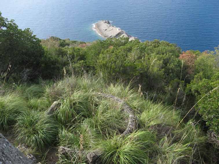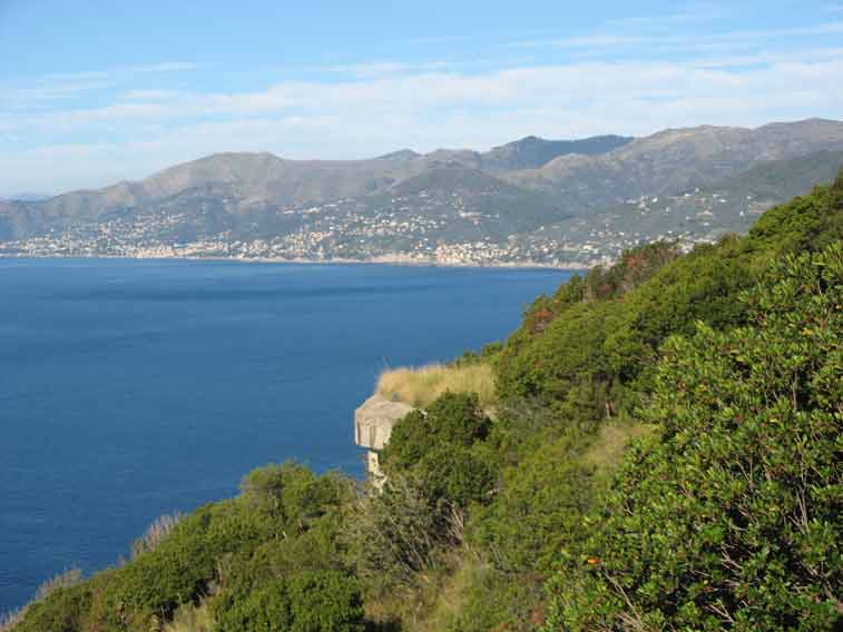Vista verso La Spezia,si distingue in basso la Torretta di San Fruttuoso e dietro l'omonima baia.