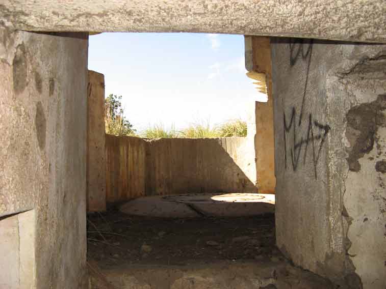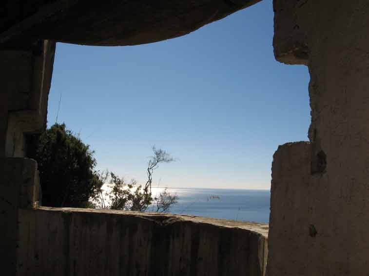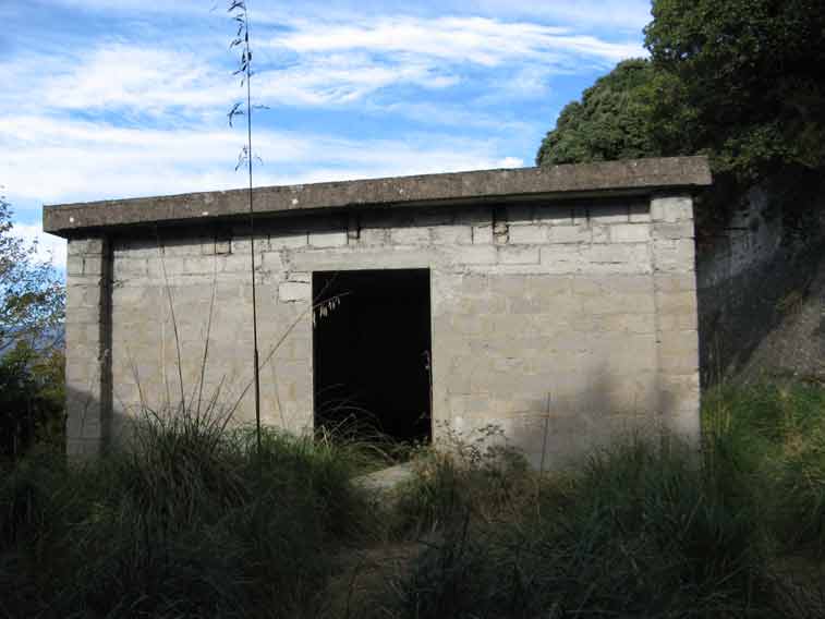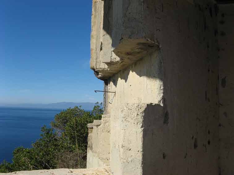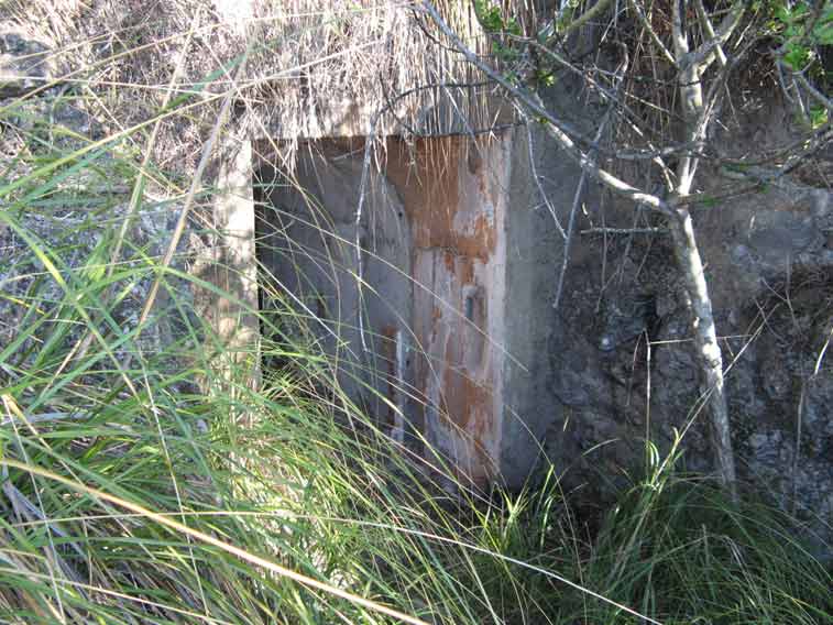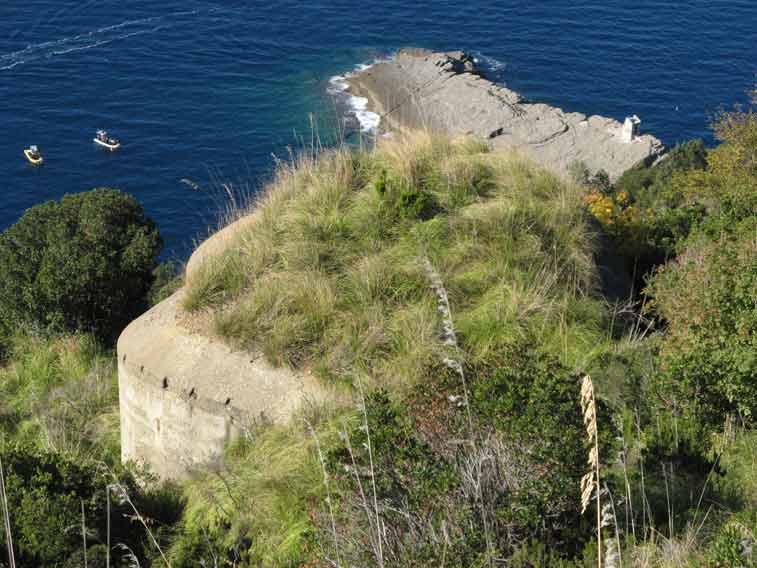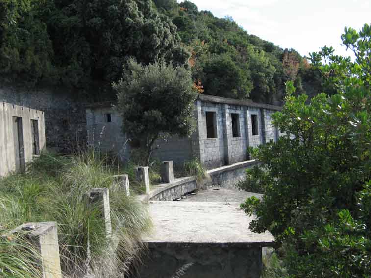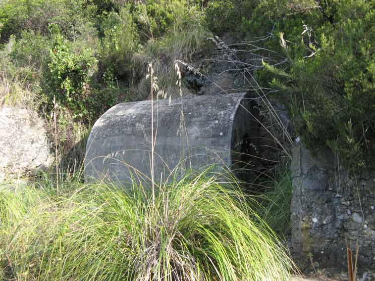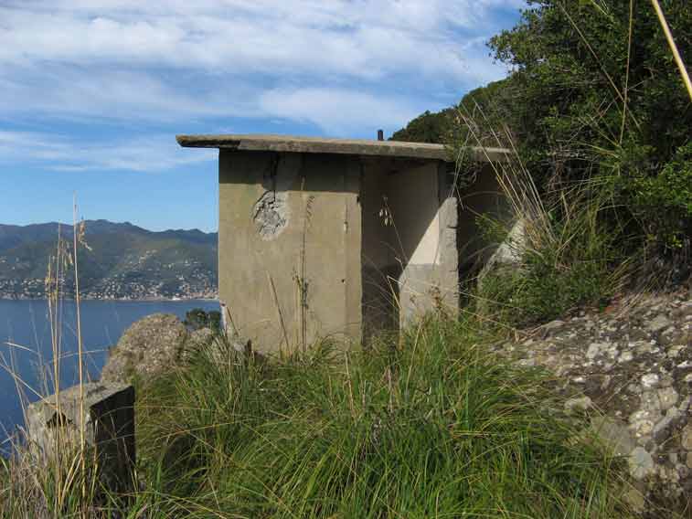 Postazione allo scoperto per mitragliatrice,sul lato W dei fabbricati.Visibile sullo sfondo Punta Chiappa