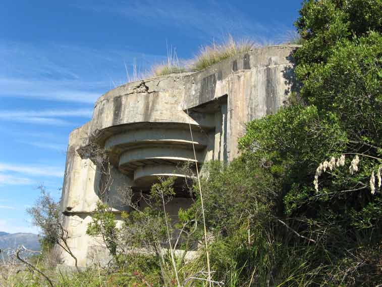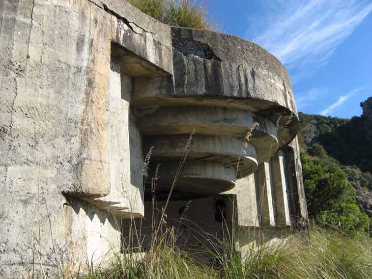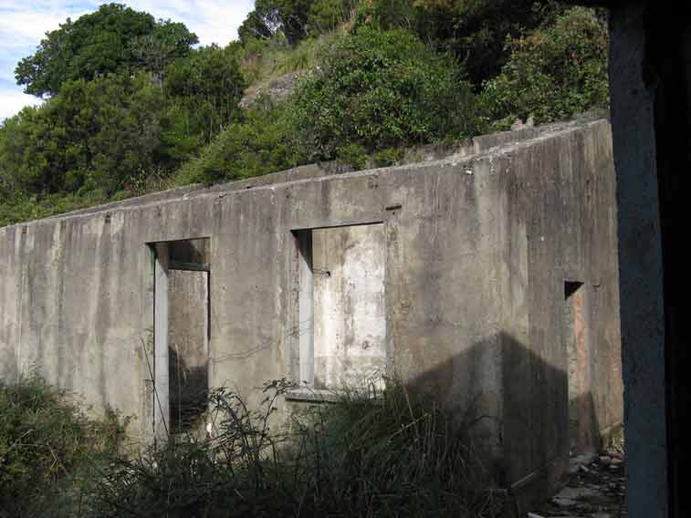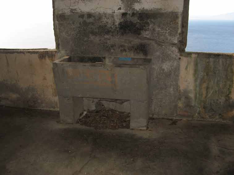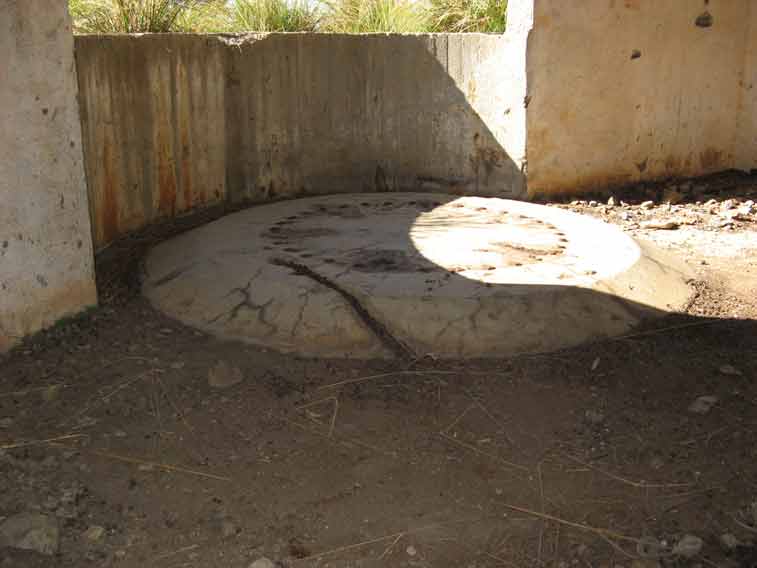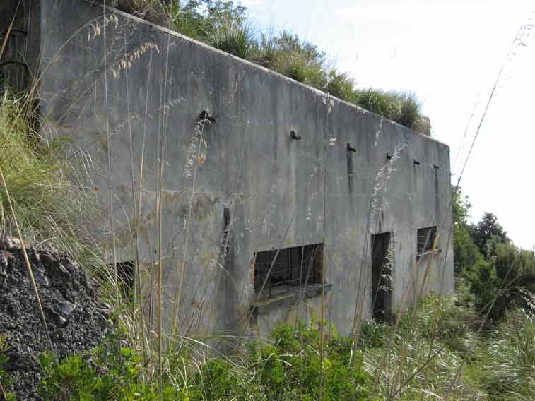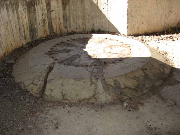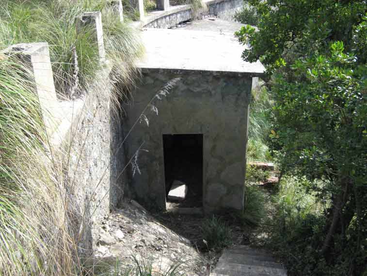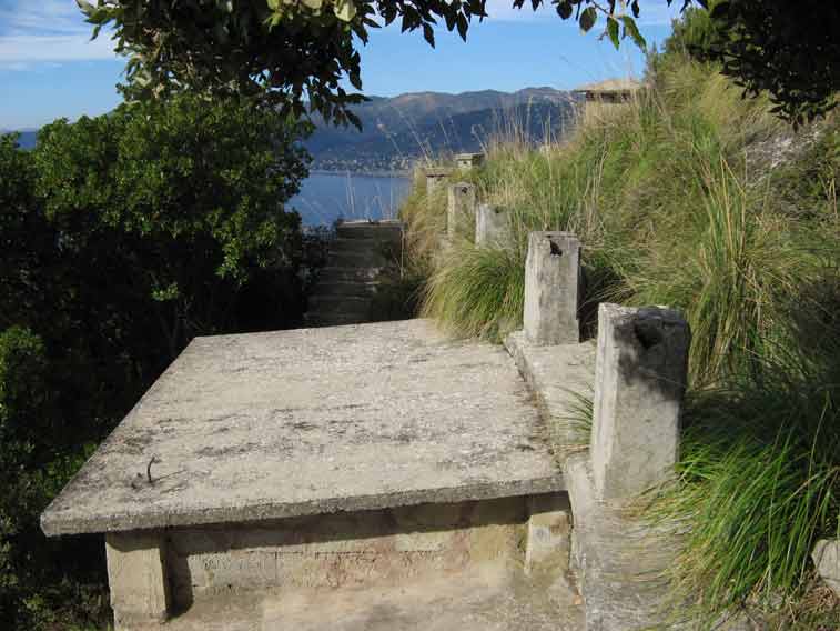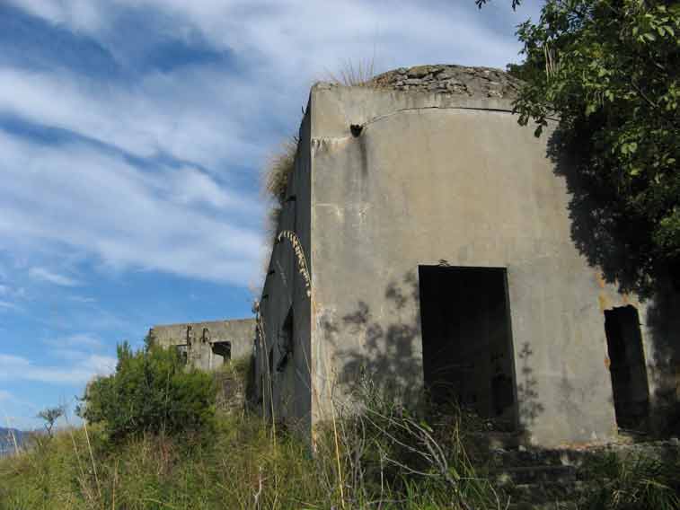 Postazione allo scoperto per mitragliatrice,sul lato W dei fabbricati.Visibile sullo sfondo Punta Chiappa