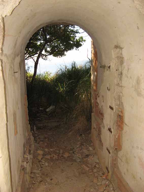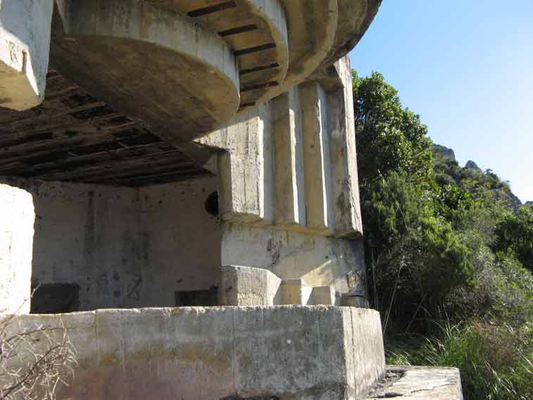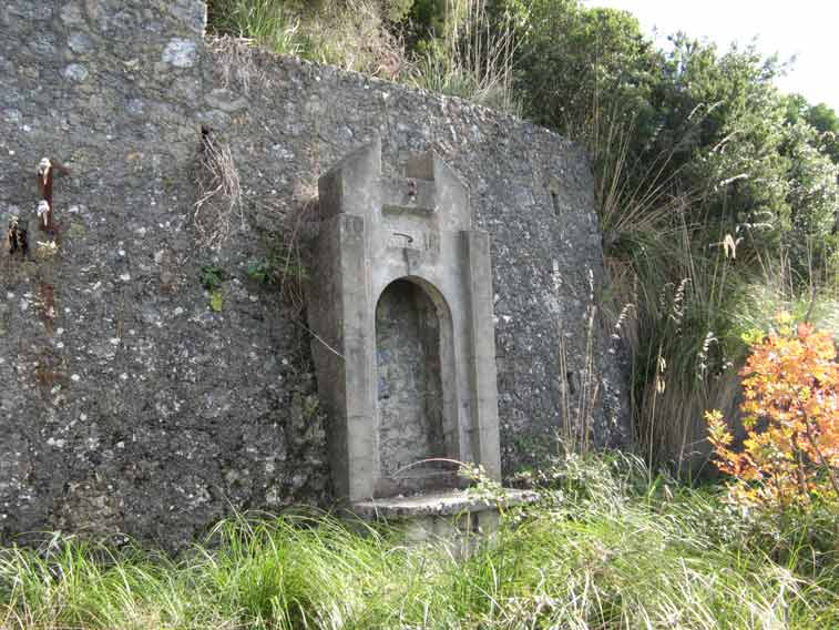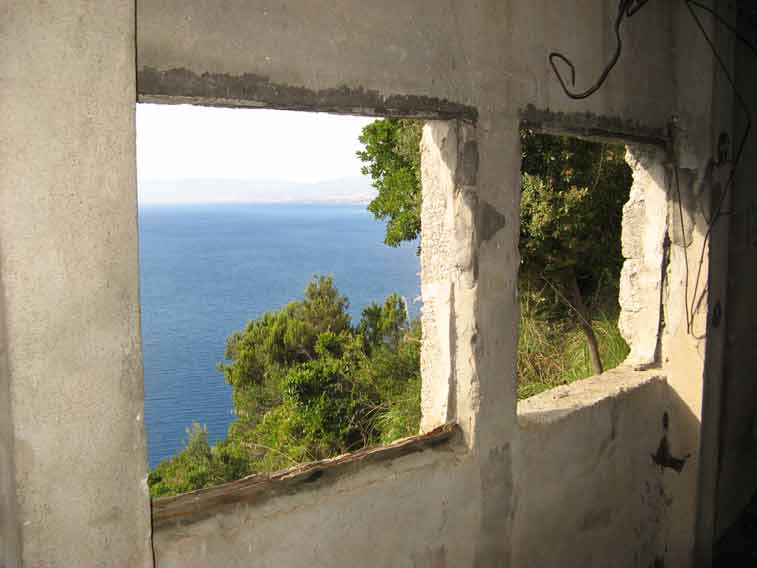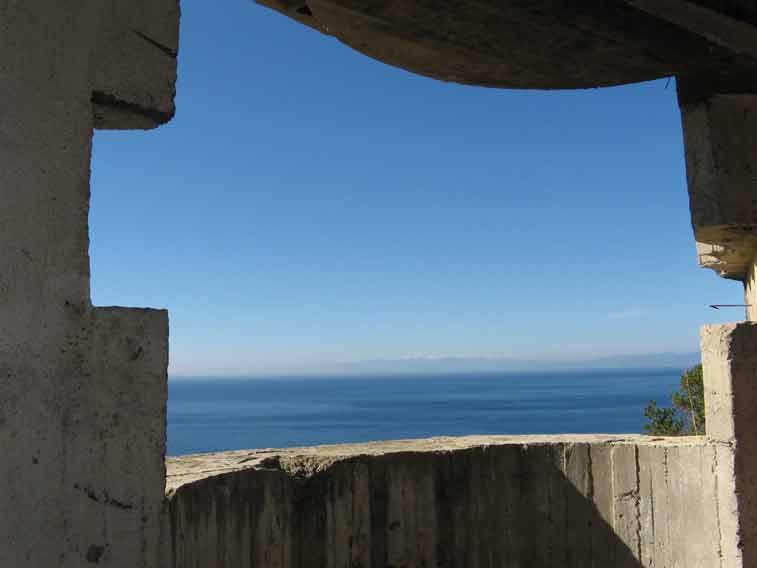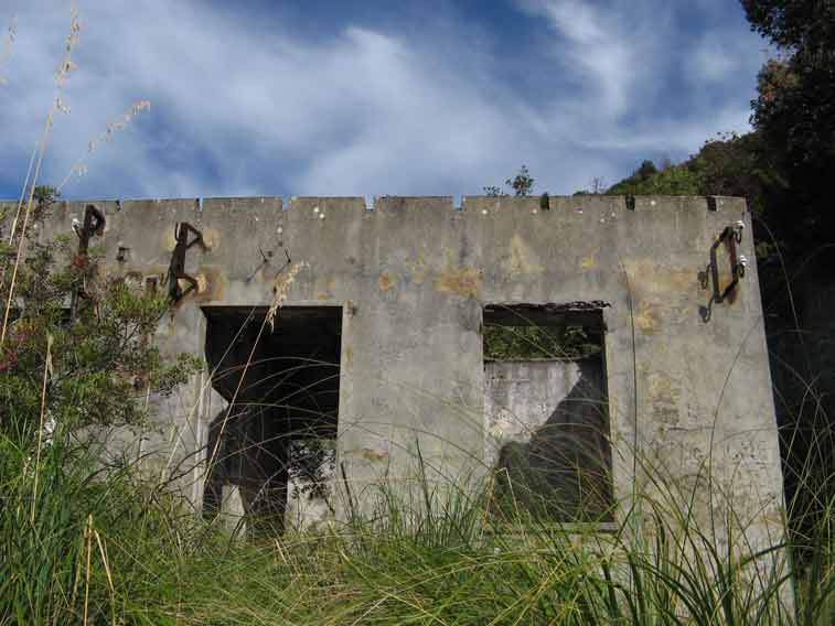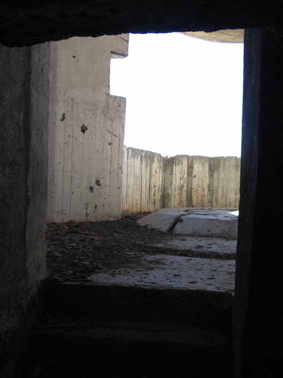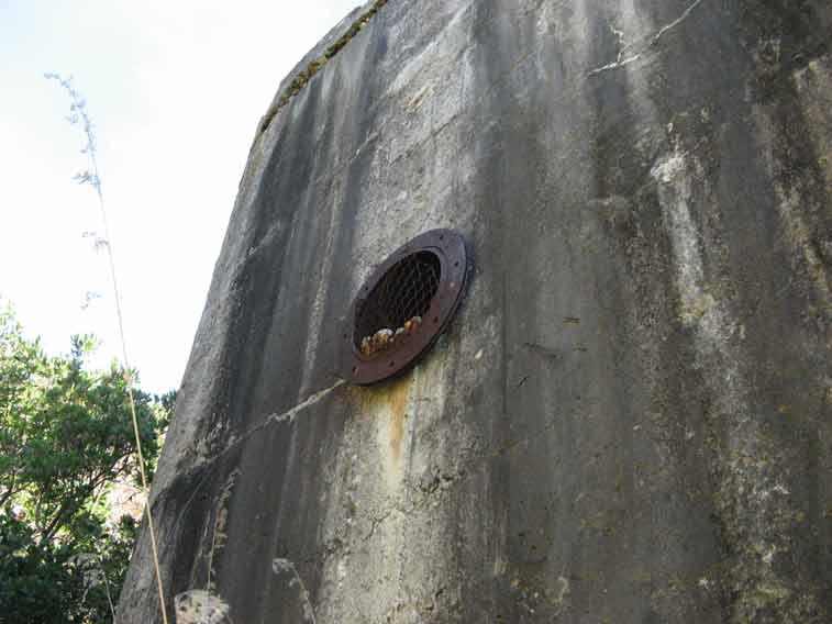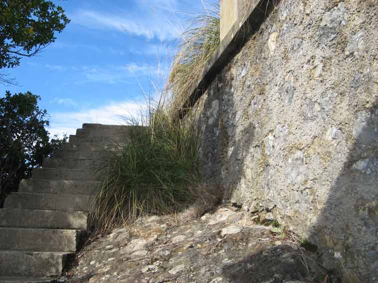 Postazione allo scoperto per mitragliatrice,sul lato W dei fabbricati.Visibile sullo sfondo Punta Chiappa