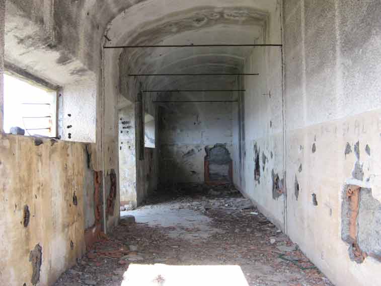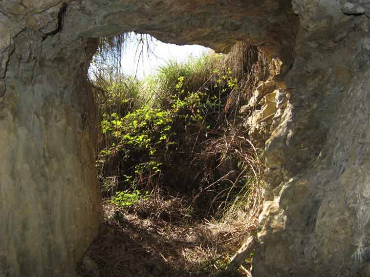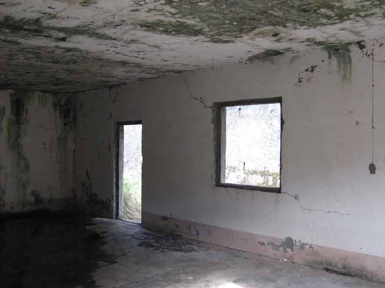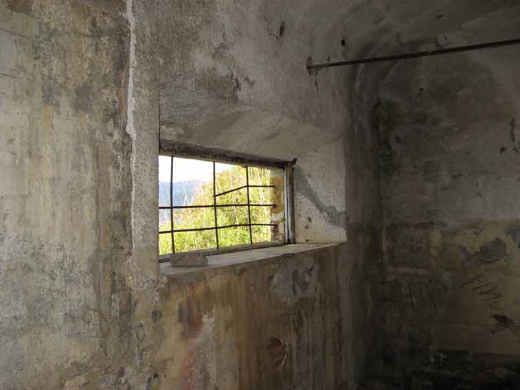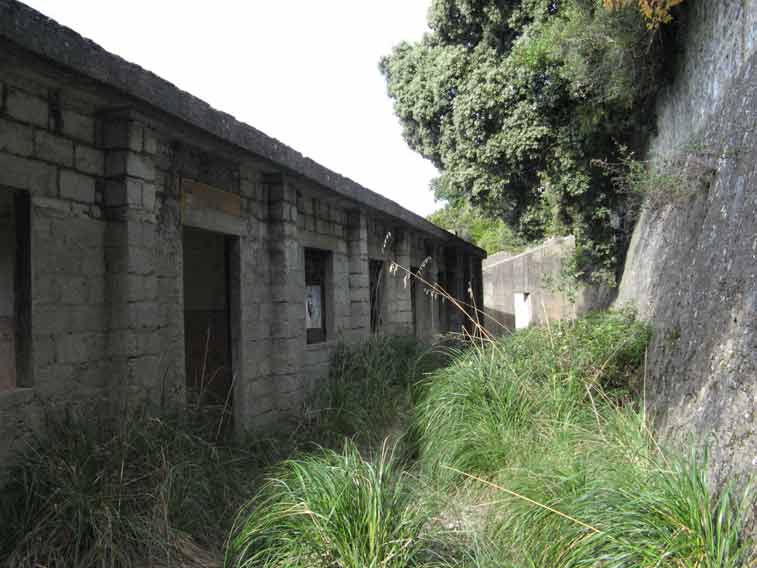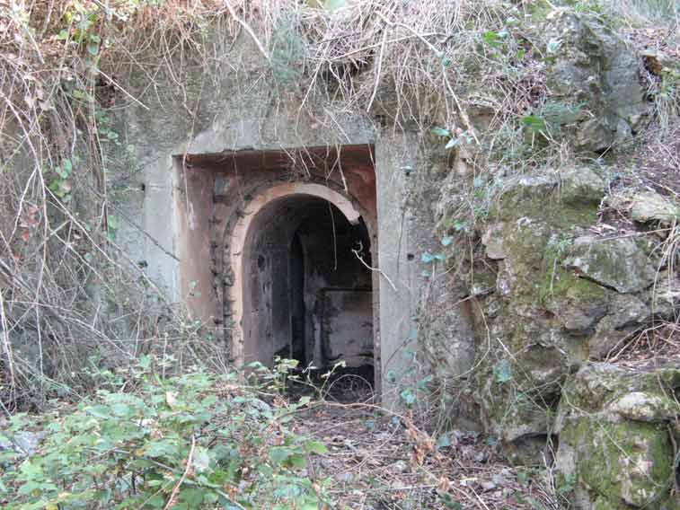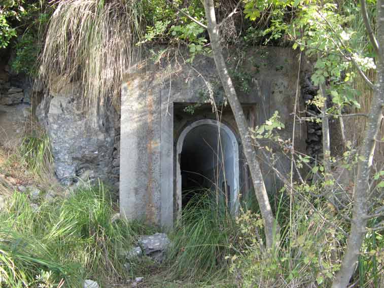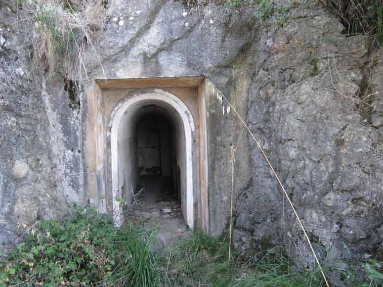 Nella parete rocciosa dietro agli edifici erano ubicati gli ingressi dei tunnel N.1 e 2 adibiti a deposito munizioni e ricovero per il personale.