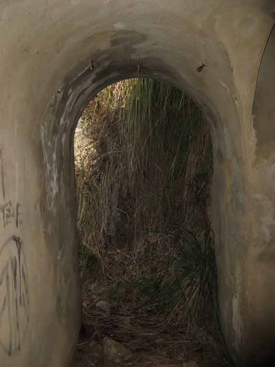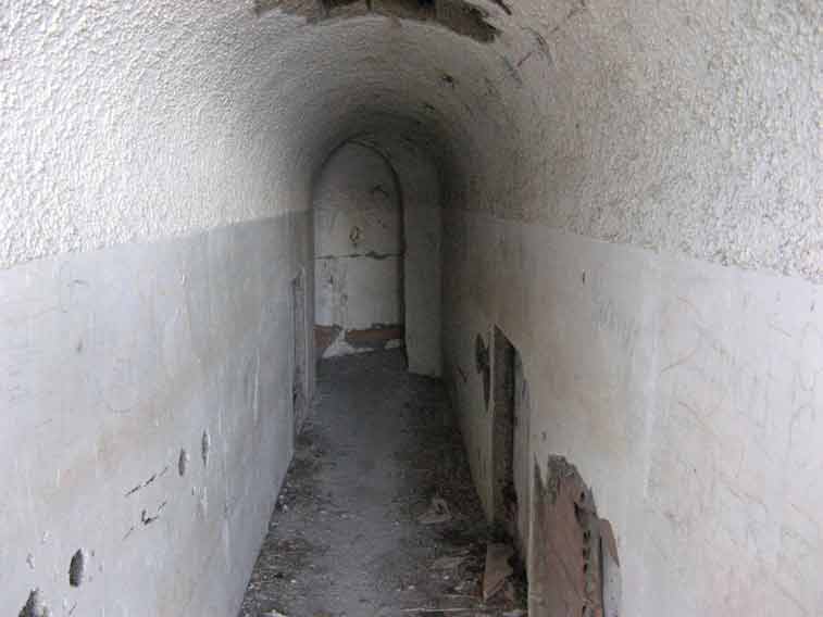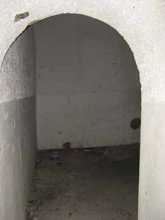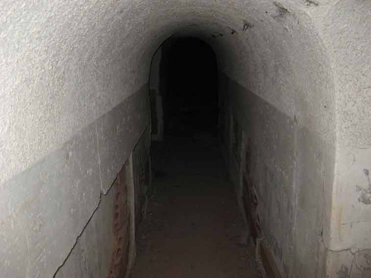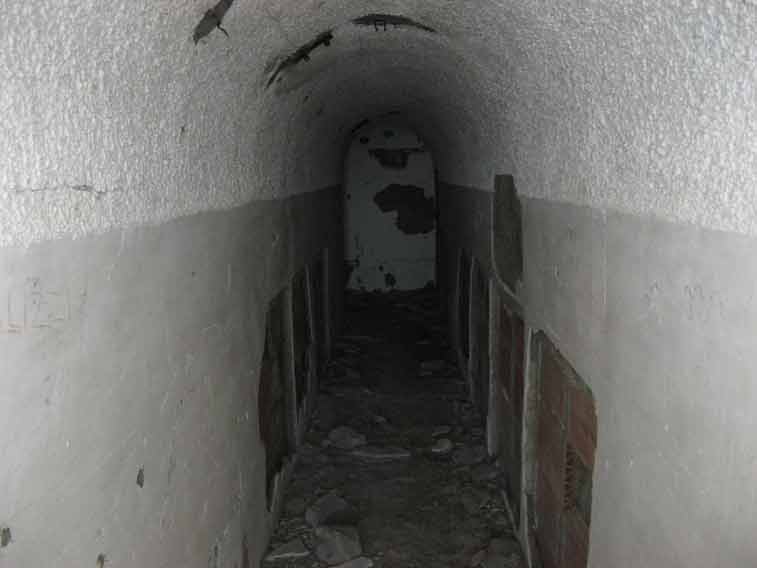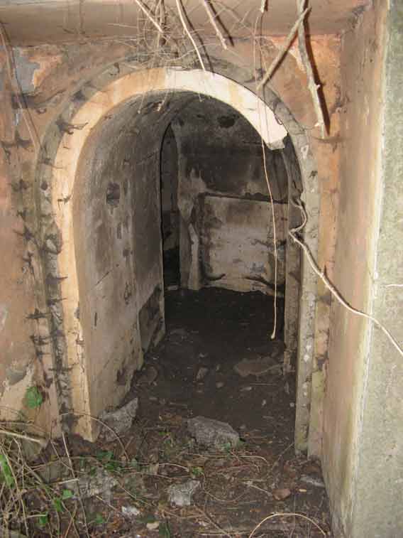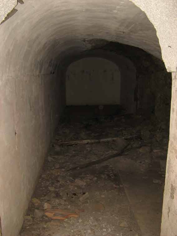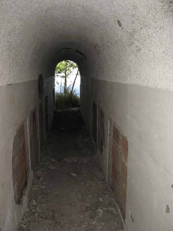 Il tunnel N.1 si inoltra nell`interno con un corridoio diritto rivestito lungo circa 25 metri,al fondo un locale di circa 30 m2 fungeva da deposito munizioni.