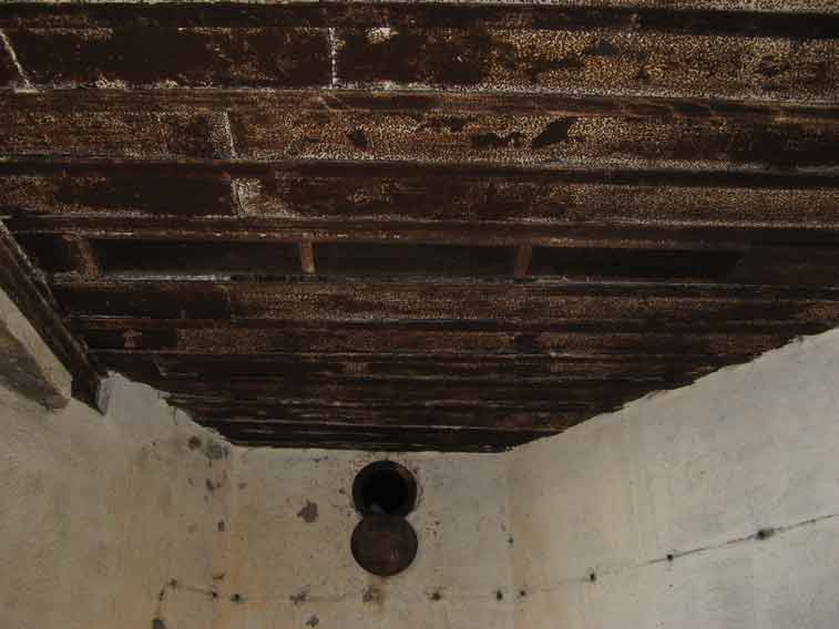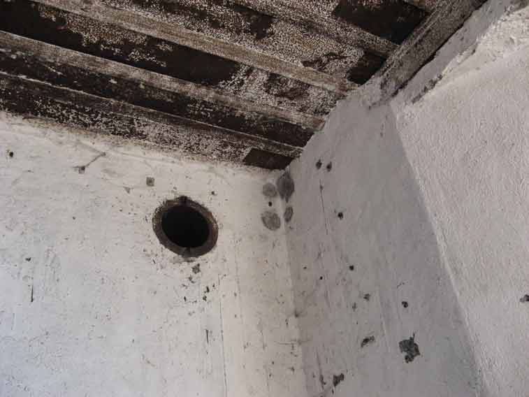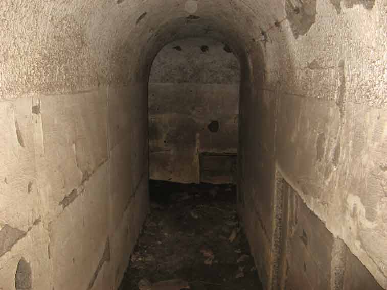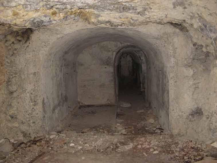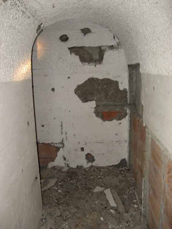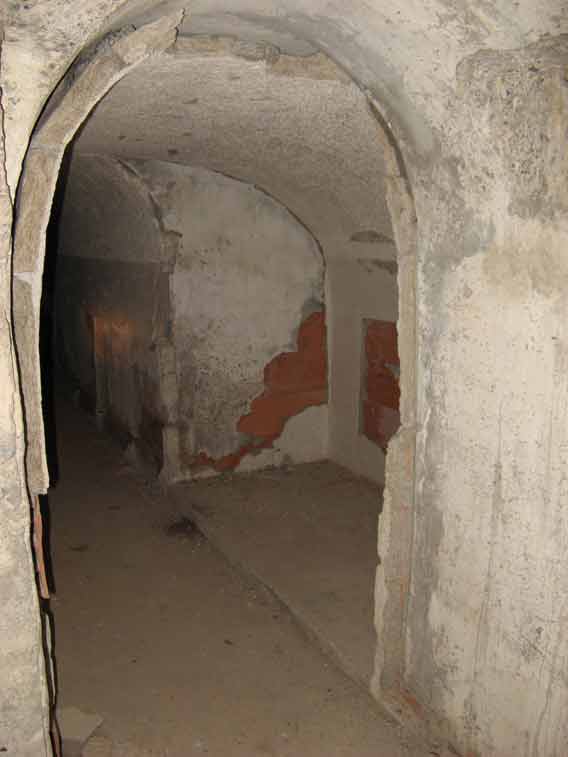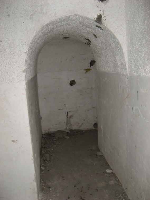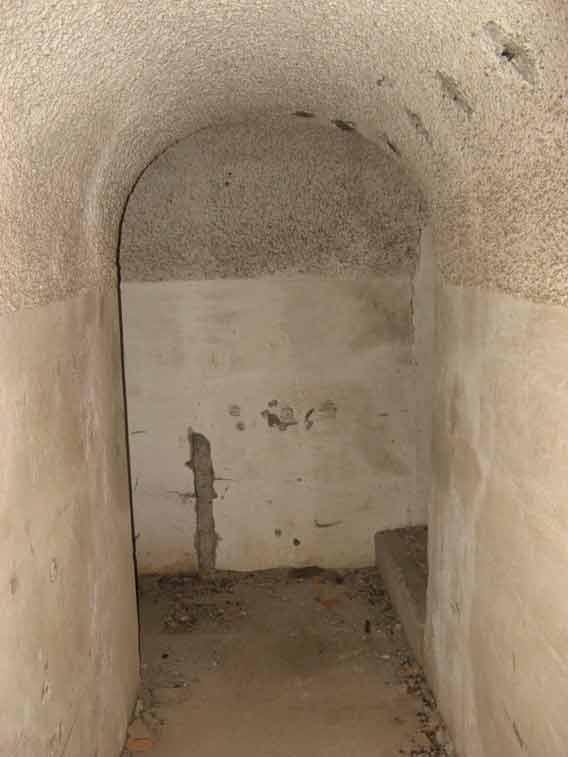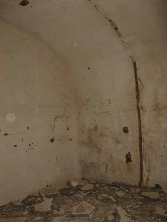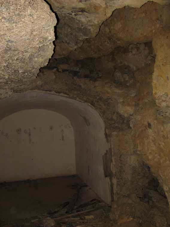 Curioso il sistema di isolamento dei locali e tunnel in caverna,dopo aver rivestito con l`intonaco la roccia veniva gettato uno strato di erba(o paglia) mista a cemento e successivamente uno strato di mattoni ed intonaco.Questo sistema è visibile nei tratti di parete crollati.