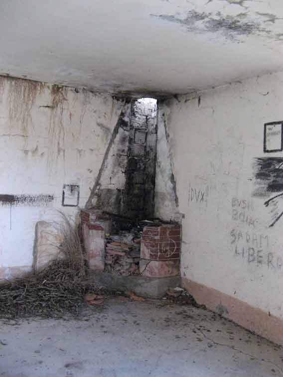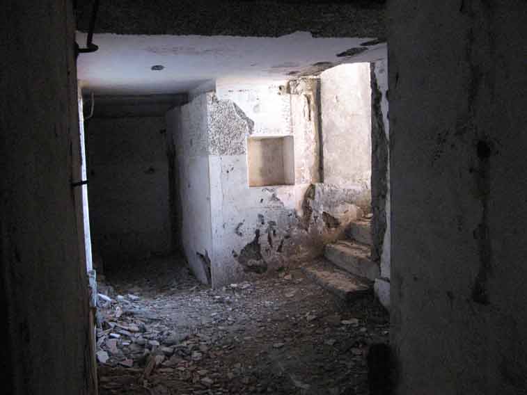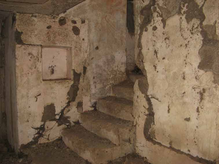 Una botola con coperchio metallico,attualmente chiusa con lucchetto permetteva di accedere tramite una scala a pioli metallica e una in muratura a chiocciola al tunnel di collegamento con il bunker radio sottostante(N.3)
