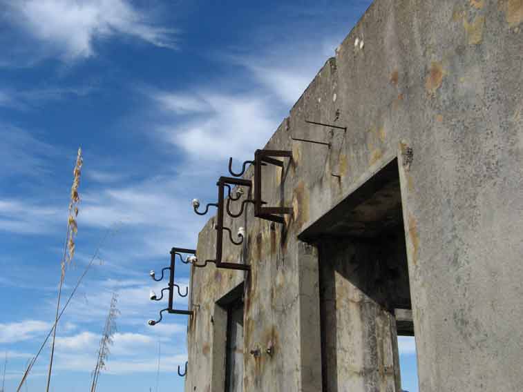 Di fronte all`ingresso del locale comando è ancora visibile,nella sua posizione originale una lama metallica con funzione di pulisciscarpe,necessaria a togliere il fango dalle suole.