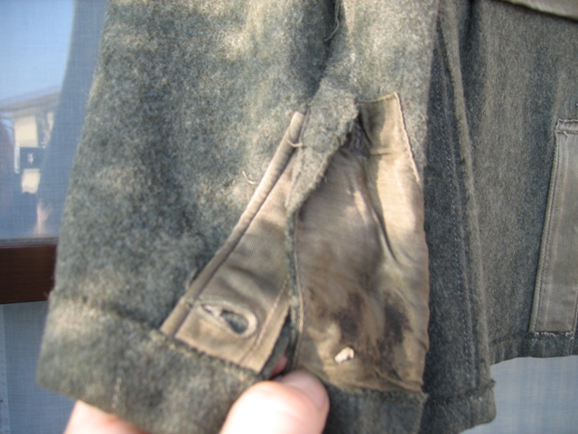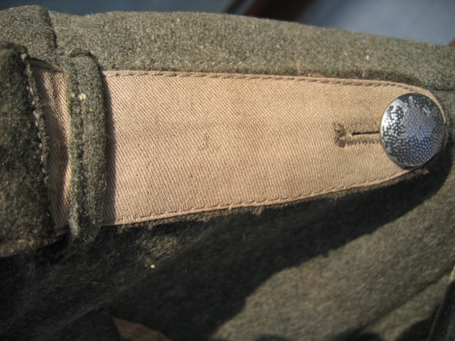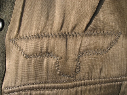 Nel tuo caso mi sembra piuttosto evidente un intervento recente o perlomeno effettuato dopo la guerra, nota la macchinata sopra la fodera (si scorge anche una macchinata precedente) ed anche il tipo di aquila non consono al periodo. E' anche vero che nelle foto d'epoca si possono notare combinazioni di giacche mod.43 con aquile o spalline del vecchio tipo, ma non mi sembra il tuo caso per i motivi sopracitati.[;)]