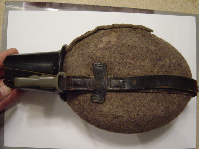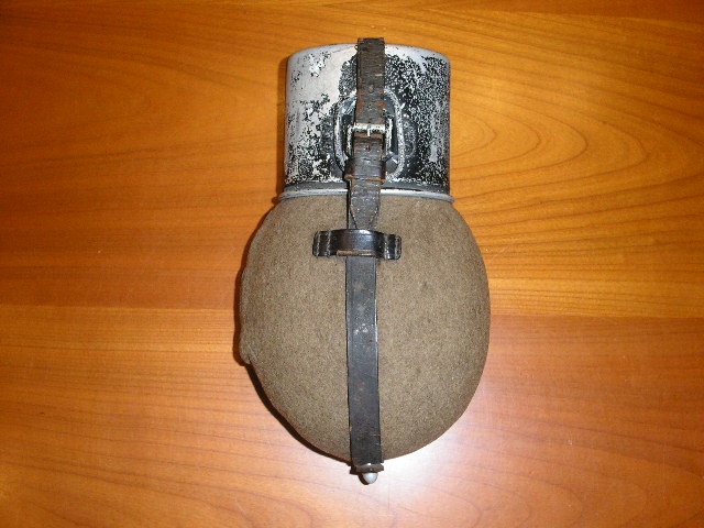 Ciao amici,oggi vi posto la mia "feldflasche" in condizioni "mint".Perfetta in tutto e per tutto,purtroppo manca il rivetto di fissaggio del tappo alla pattina in pelle.Dettaglio non da poco...ma nel complesso sono molto contento di averla in collezione.Ecco le foto: