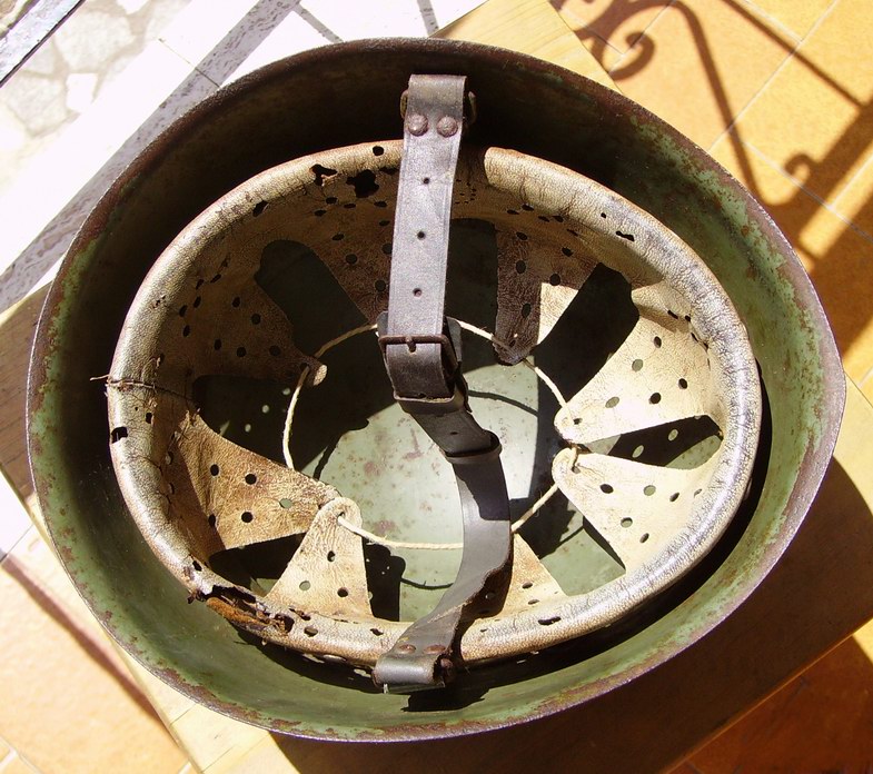 Questi elmi italiani sono un dilemma,una "moda" che va molto adesso tra le carogne falsarie è levare i rivetti e l'interno ai postbellici tenerli sotto terra e fargli passare per elmetti da scavo dopo che si sono arruginiti. [1535