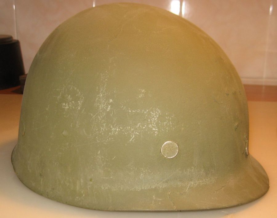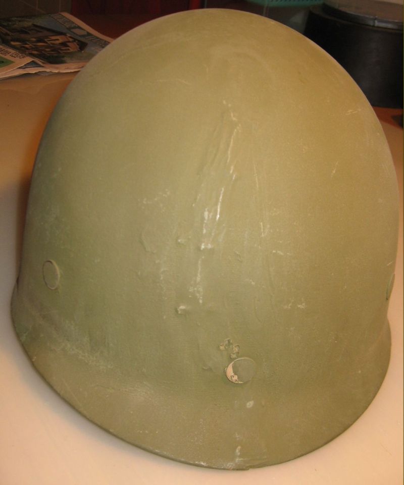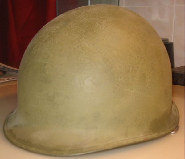 Dobrebbe essere, il guscio, anche leggermente più piccolo degli elmetti bellici, ovvero l'altezza al centro dovrebbe essere circa cm. 18,5, mentre quelli bellici sono cm. 19,6.