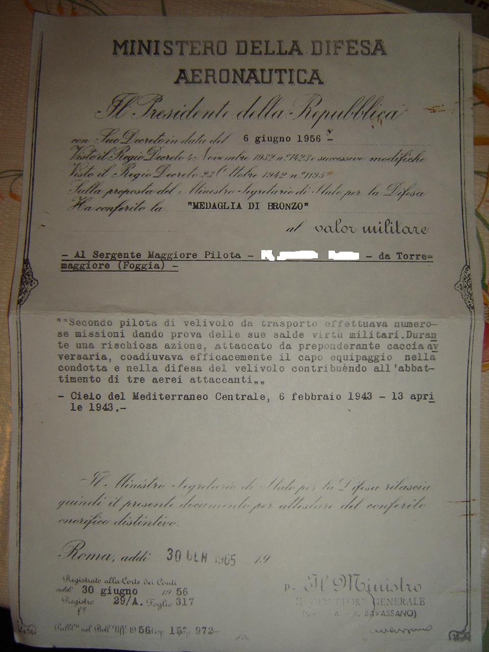 Questo è l'attestato della Medaglia di Bronzo al Valore Militare che mio nonno si guadagnò sul Fronte Russo, nell'abitato di Skororijb, durante il terzo giorno di ripiegamento...