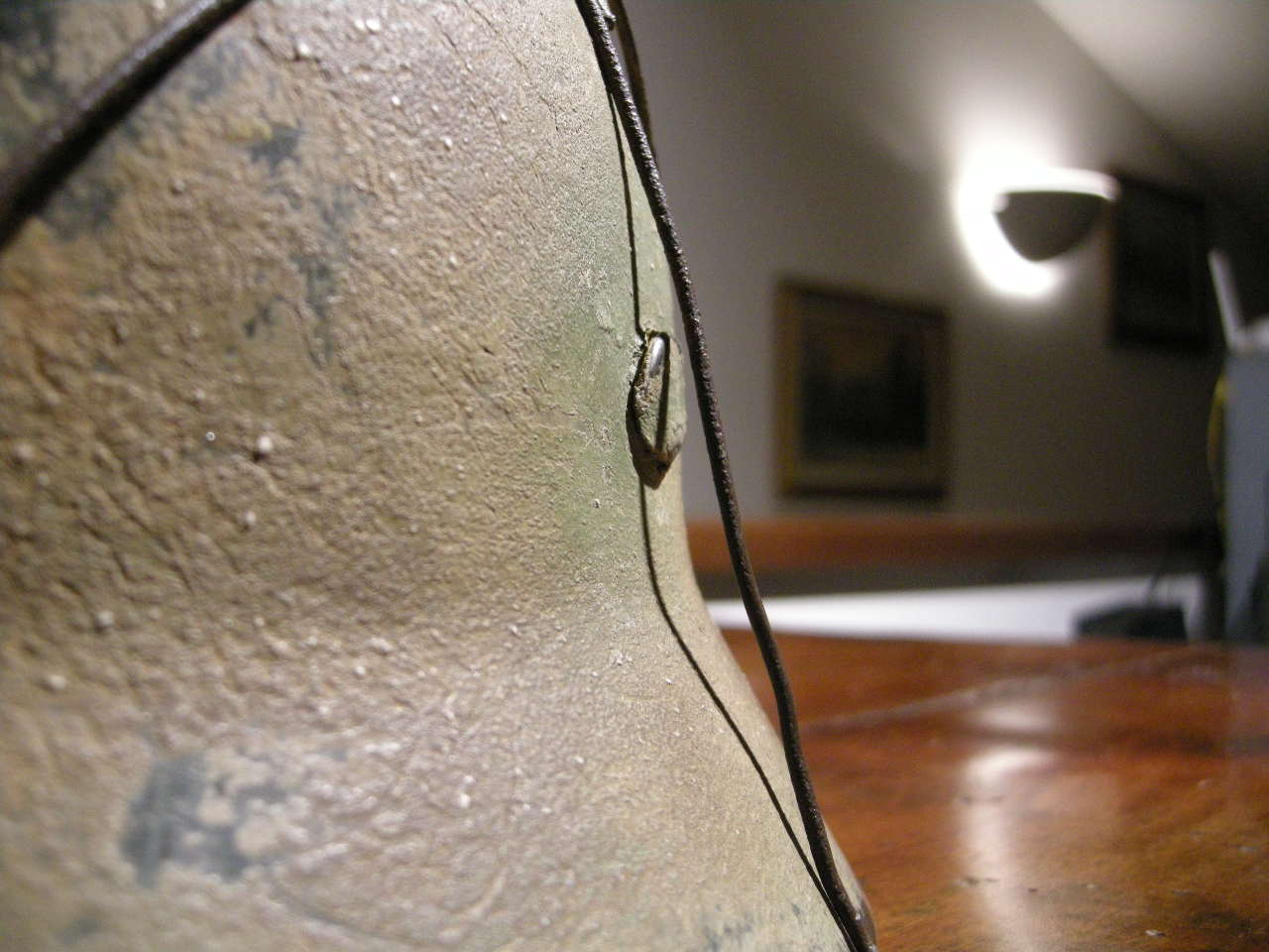 ok faro' in modo di portare questo scomodo ferraccio in fiera cosi'valutiamo.purtroppo ho conosciuto questo forum per caso inserendo elmetto tedeco nel motore di ricerca e sono rimasto sorpreso dai vostri precisi consigli(siete proprio bravi) ma purtroppo l'elmo lo avevo gia' comprato infine mi sorgono dubbi anche sul guscio dato che la stampa q64 si vede anche all'esterno del guscio e sembra che l'artista in questiona abbia tolto la sbavatura ,con un "frullino"o piccolo flessibile, data probabilmente dall uso di un utensile per falsificare la scritta provvedero'ad inserire una immagine piu' dettagliata
