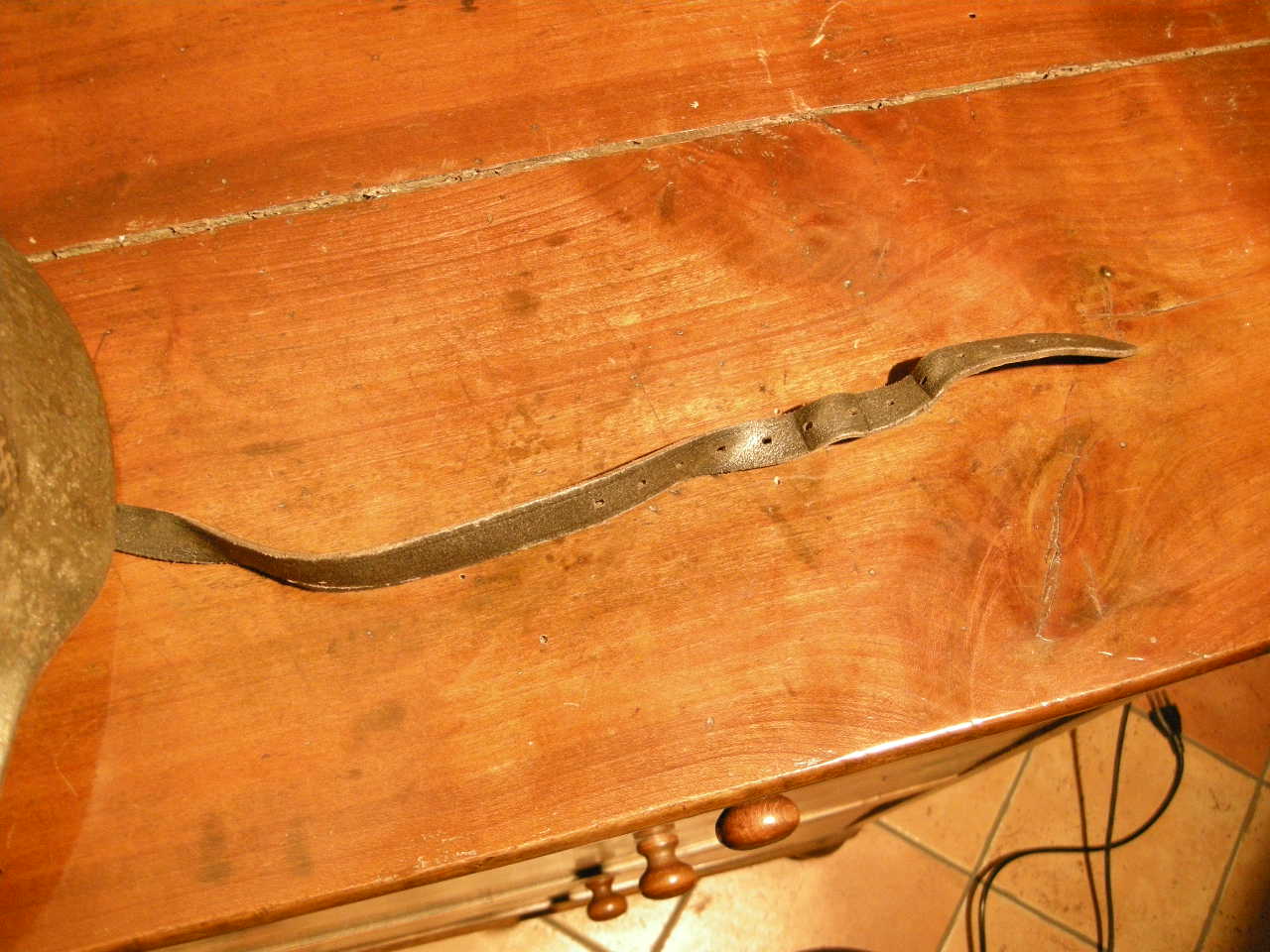 grazie ancora!vi posto altre immagini del soggolo che a detta di chi me lo ha venduto fa parte dell'elmo. un' altra domanda secondo voi chi e' il costruttore? nei punti dove dovrebbere esserci lo stampo non vi e' traccia dato che come potete vedere e' stato mangiato dalla ruggine posto anche le immagini dove si dovrebbe vedere il becco dorato