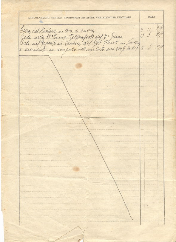 Il riquadro 9) è stato compilato negli anni successivi alla guerra ma segue la procedura indicando a fianco nell`apposita colonna le date corrispondenti.