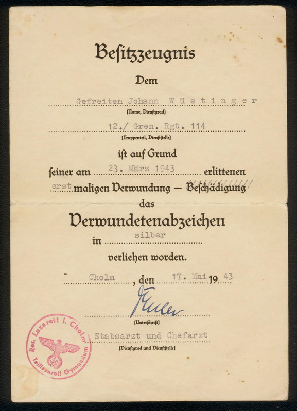 Quando riceve il primo,classe Nero,siamo nel 1943 ed è un semplice Gefreiter: