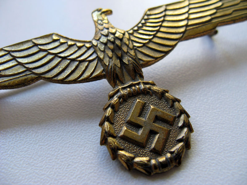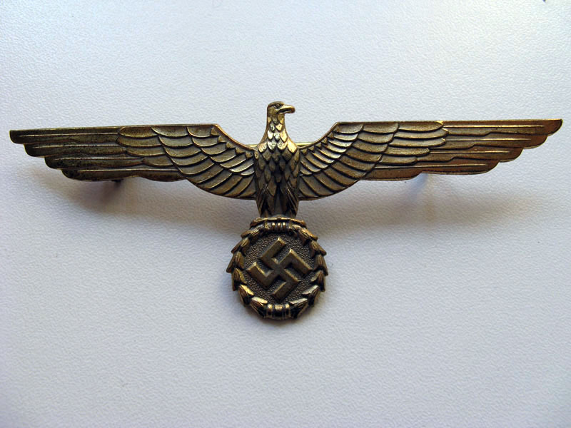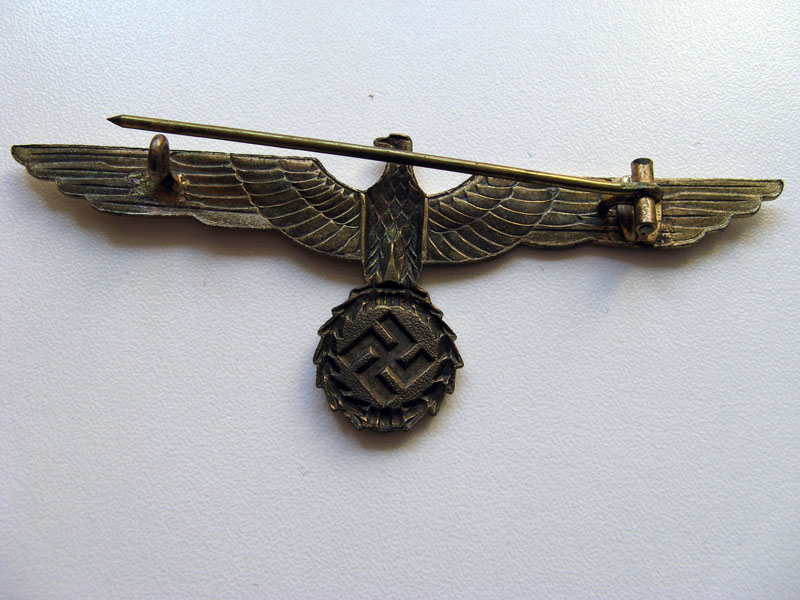 A dire la verità* mi mancano altri 2 modelli, ben poco conosciuti invero. Essi sono per l'associazione tedesca per i marinai, ossia la National Sozialistische Deutscher Marine Bund, e per il Soldatenbund ossia la lega per i soldati. Entrambe le organizzazioni sono state incorporate poi nell' NS-RKB nel 1938. Le aquile di queste associazioni erano in forma molto simili a quella da me postata, con la differenza che quella per marinai era placcata con smalto dorato.
