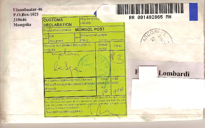 La busta conteneva una medaglia sovietica per la vittoria sul Giappone, con relativo documento, conferita a un militare mongolo.
