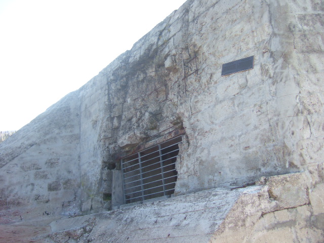 Non solo era una base di lancio, ma le V-2 venivano anche assemblate qui. Nella zona frontale invece, questa della foto, c'erano due aperture, che avrebbero permesso alle V-2 di essere trasportate all'esterno gia' in piedi tramite rotaie.