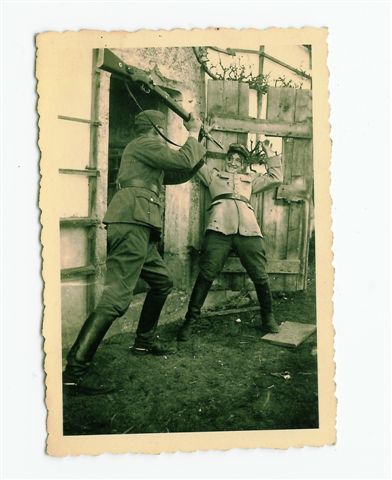 Il soggetto con la divisa chiara che prima sta per prendersi una "baionettata" poi una "mauserata" ha per caso le mostrine ss? Non riesco ad ingrandire sufficientemente la foto per la bassa risoluzione!