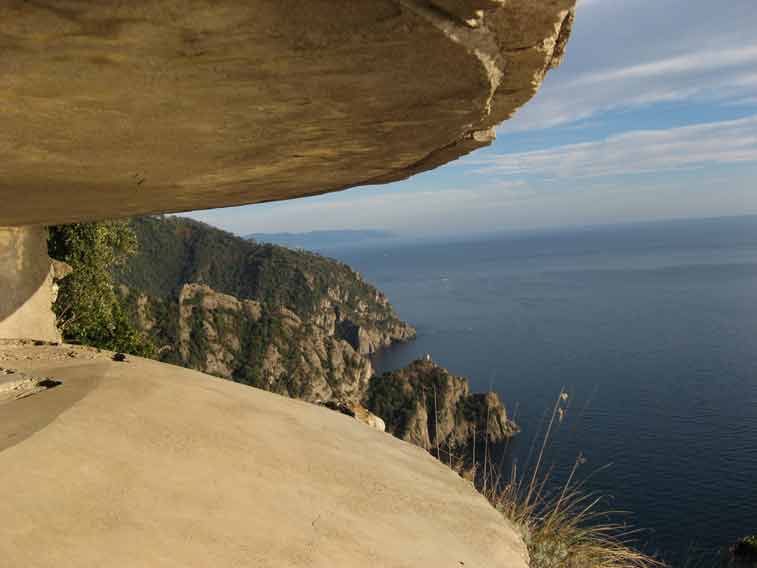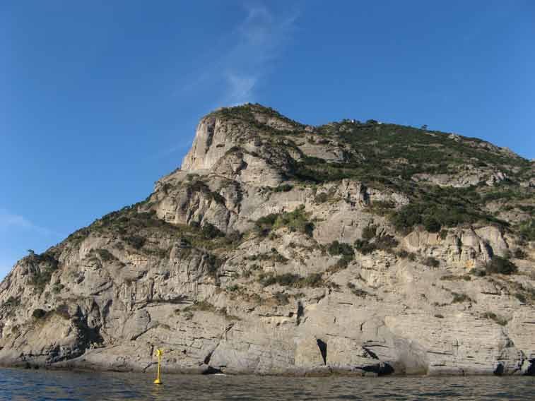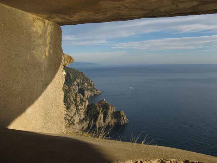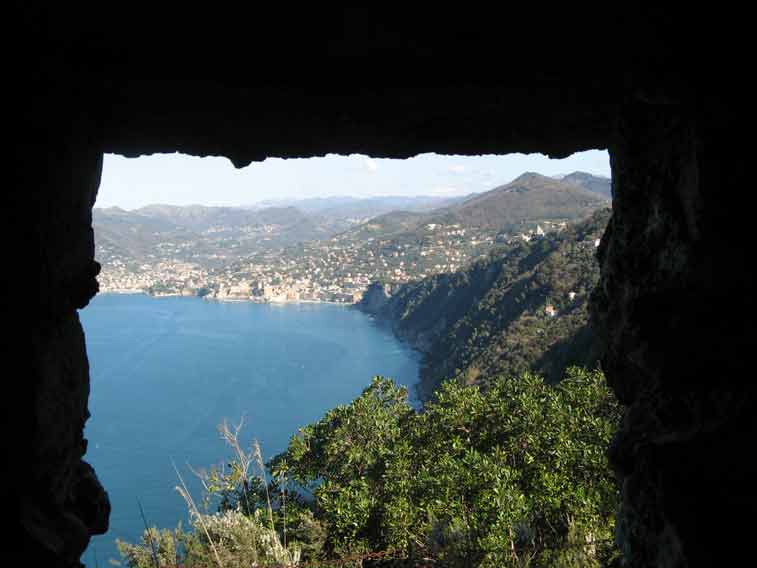 Vista verso La Spezia,si distingue in basso la Torretta di San Fruttuoso e dietro l'omonima baia.